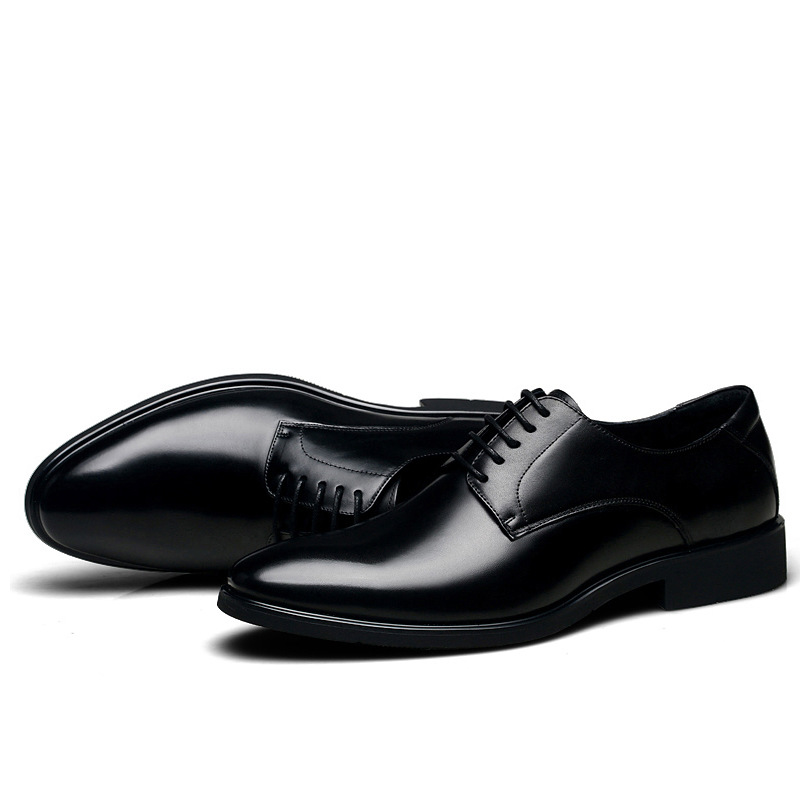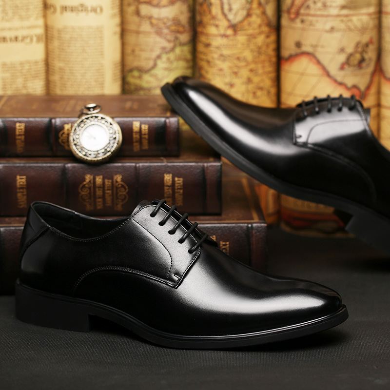 Главная страница > Мужские деловые модельные туфли, мужские черные туфли из натуральной кожи в Корейском стиле с острым носком, модные британские свадебные туфли больших размеров на шнуровке