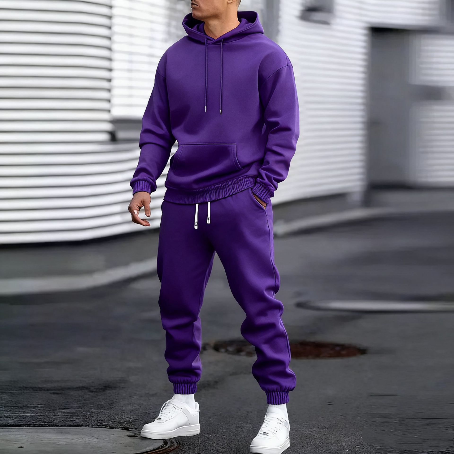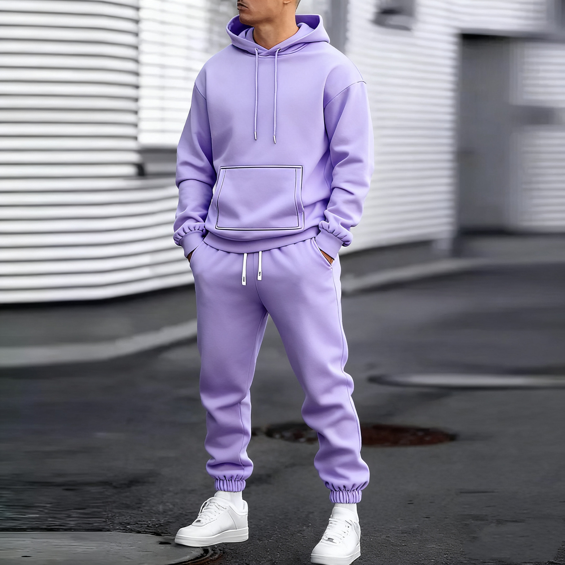 Главная страница > Мужской осенний спортивный костюм 2025 года: повседневный однотонный комплект из двух предметов (худи и брюки), свободный крой, мужская одежда