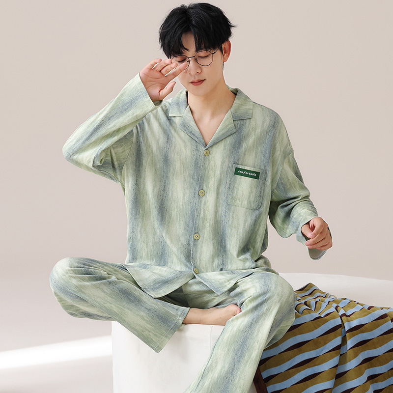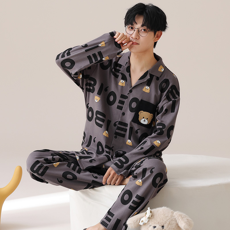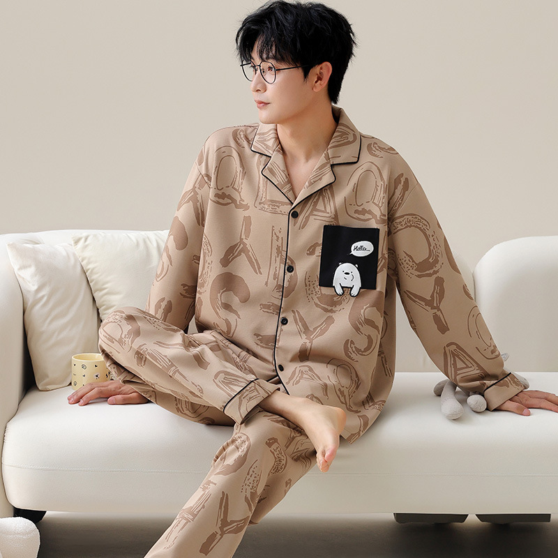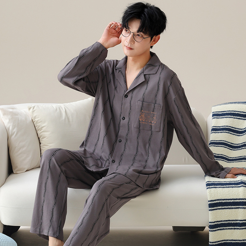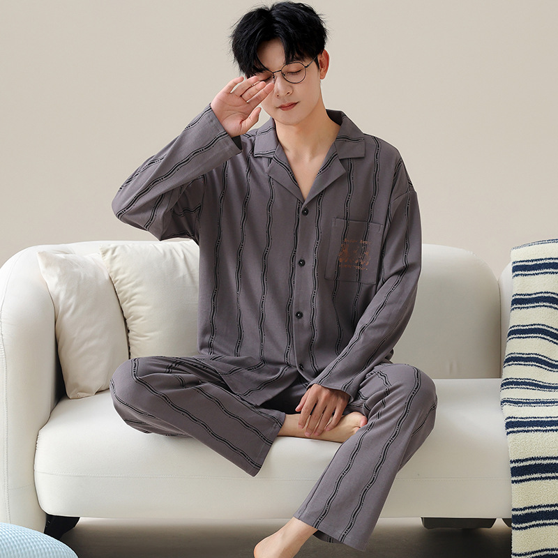 Главная страница > Весенние и осенние пижамы мужские хлопчатобумажные свободные повседневные брюки с длинными рукавами