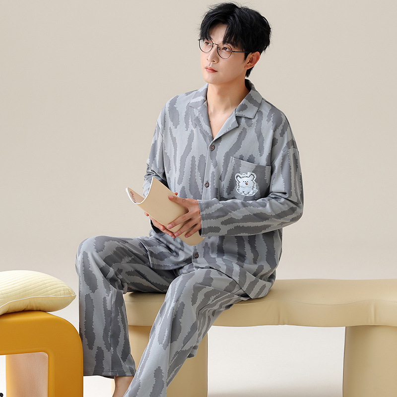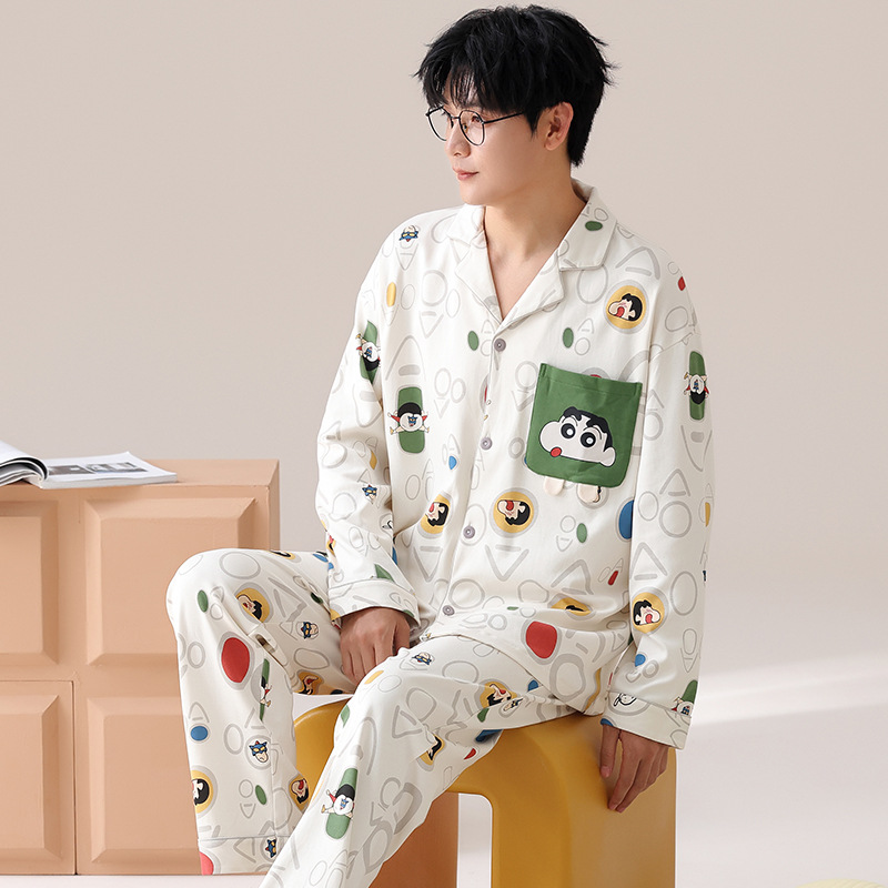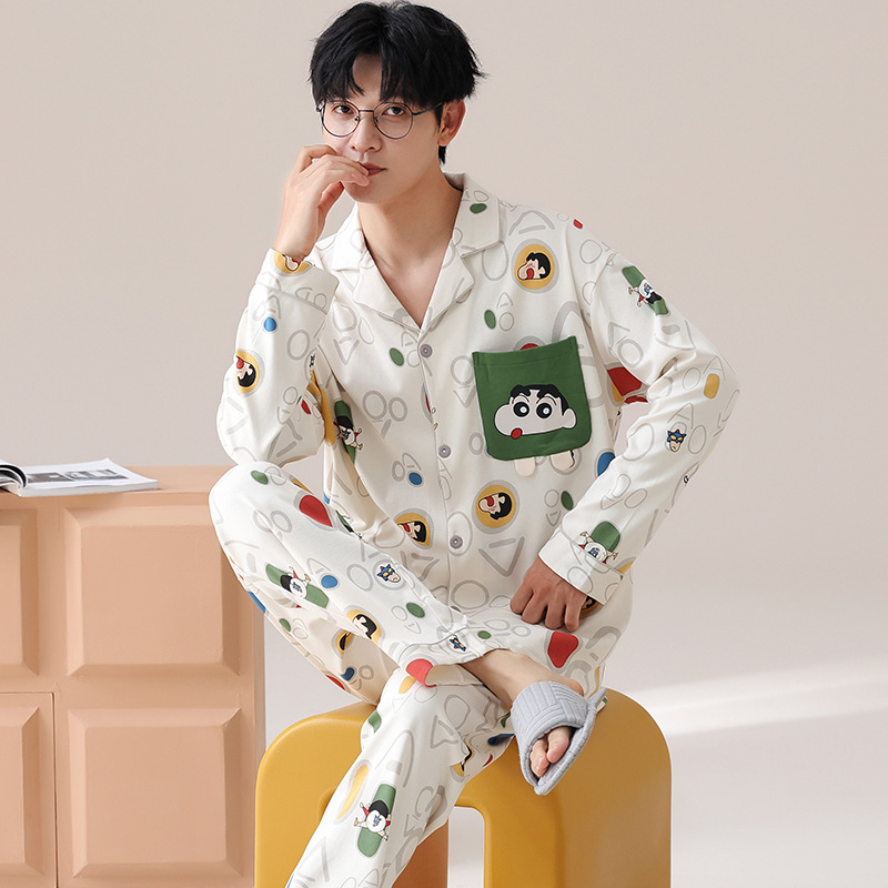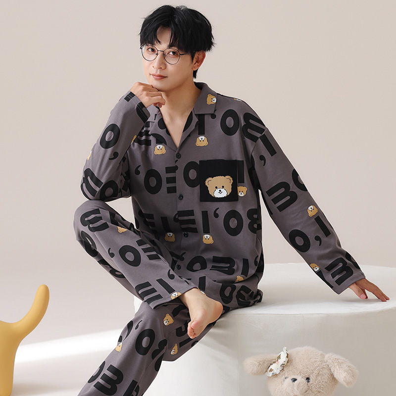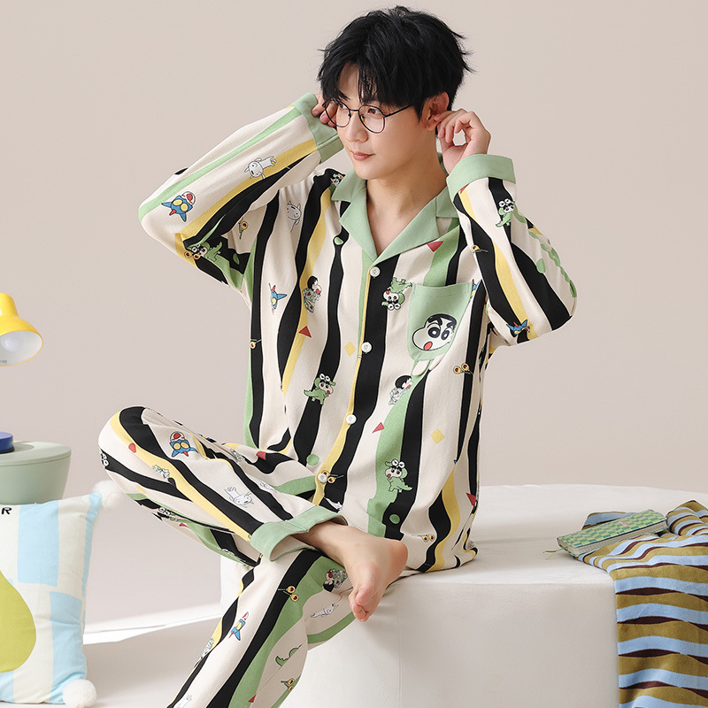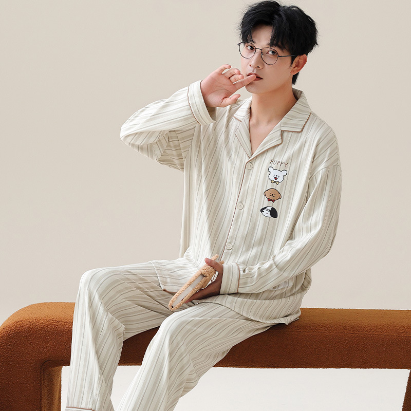 Главная страница > Весенние и осенние пижамы мужские хлопчатобумажные свободные повседневные брюки с длинными рукавами