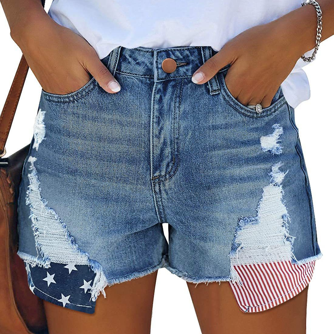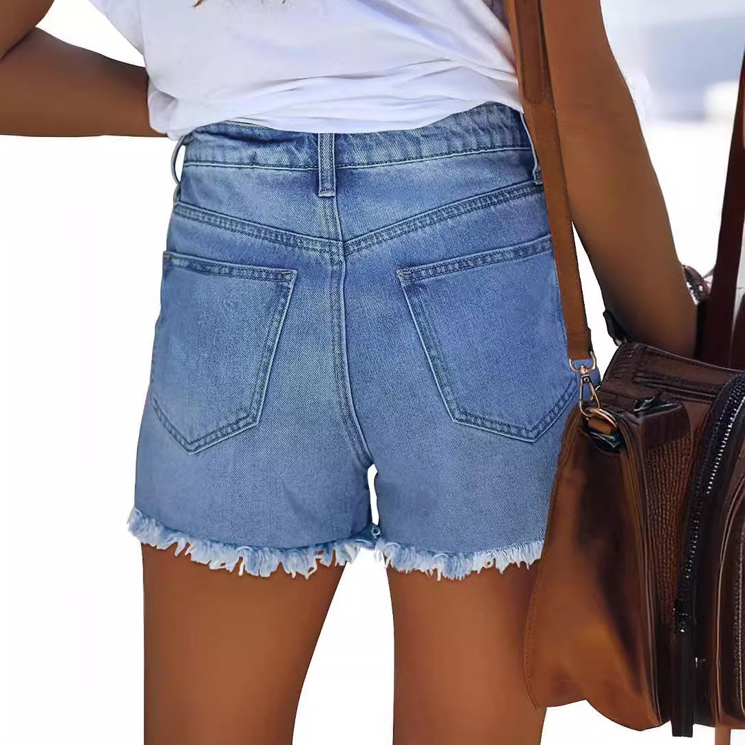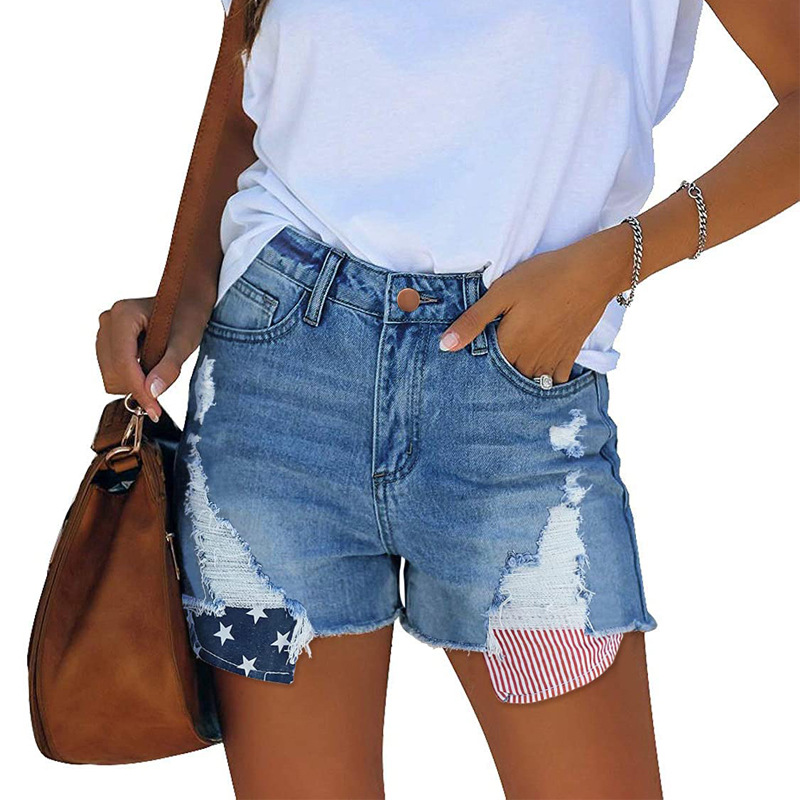 Главная страница > Amazon AliExpress ЖЕЛАЕТ независимые станции Популярные Эластичные рваные карманы с принтом джинсовые шорты для женщин