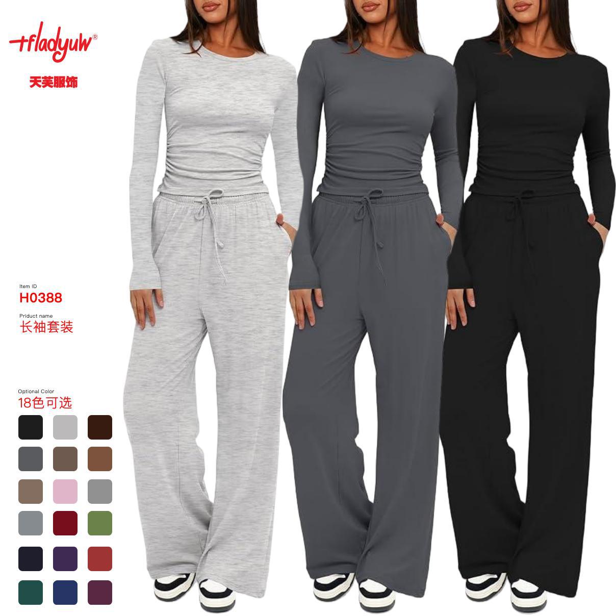 Главная страница > Спортивный костюм 2025 года: хит продаж на Amazon (Европа и Америка), однотонный повседневный комплект с длинным рукавом, топ и брюки с высокой талией и широкими штанинами.