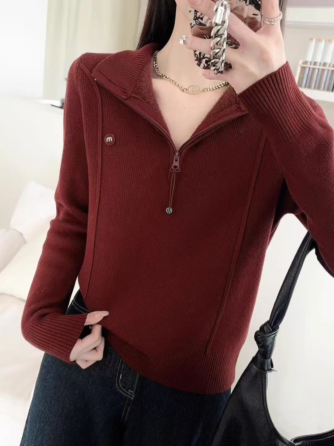 Анкара красный осенний и зимний новый иностранный пол-высокий воротник с нижним трикотажом теплый топ толстый бархатный свитер на молнии