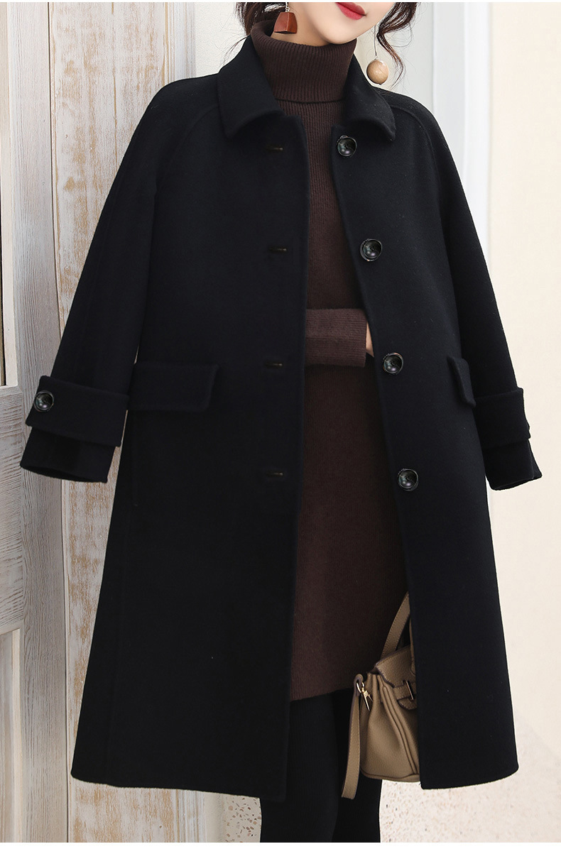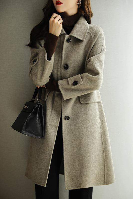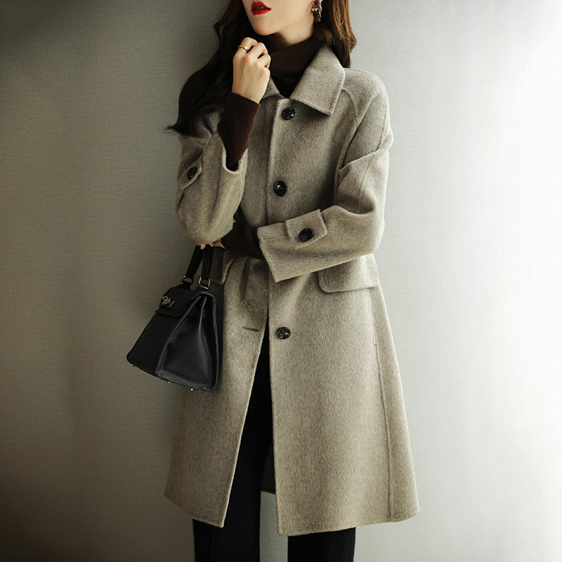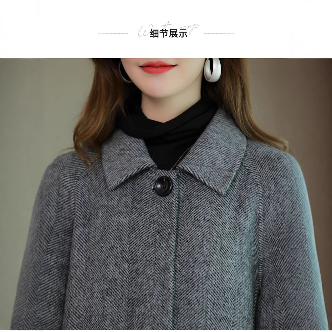 2024 осень и зима новый елочка шерстяная прямая верхняя шерстяная шерсть темперамент повседневная средняя длинная шерстяная куртка с лацканом