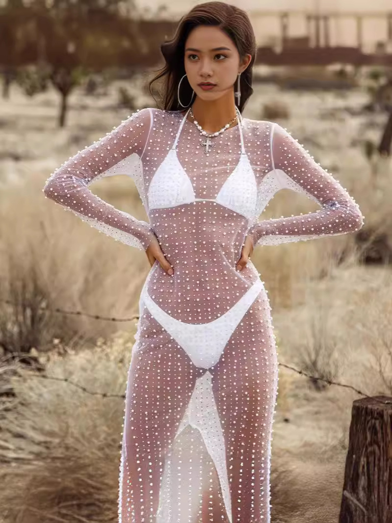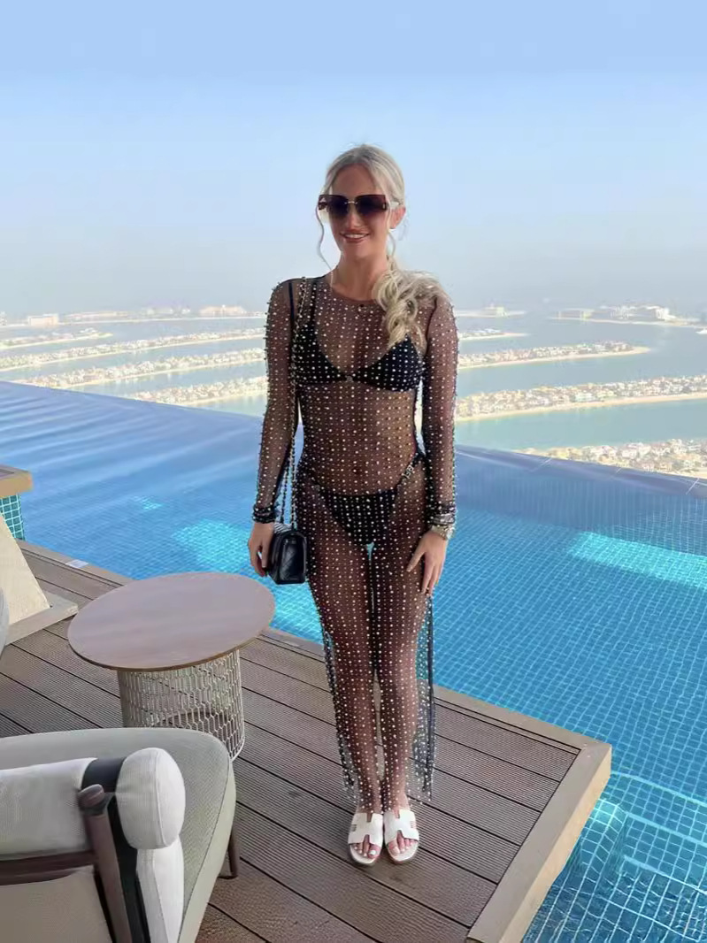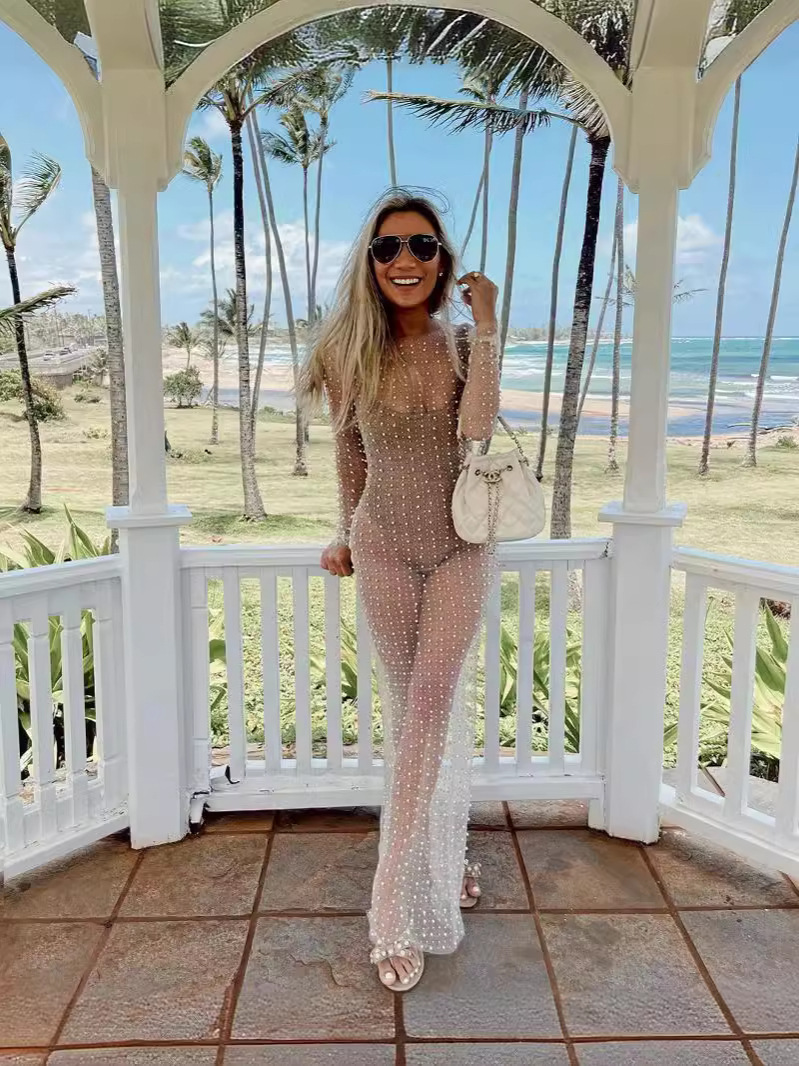 Главная страница > 2022 Европейская и Американская внешняя торговля Новый Amazon Горячая распродажа мода сексуальная бисер с горячим бриллиантом блузка сетчатое платье с длинными рукавами