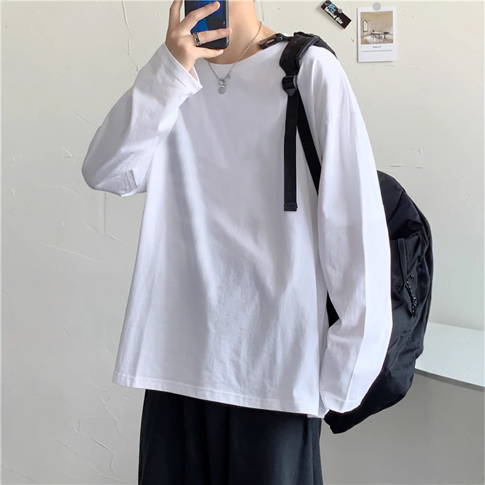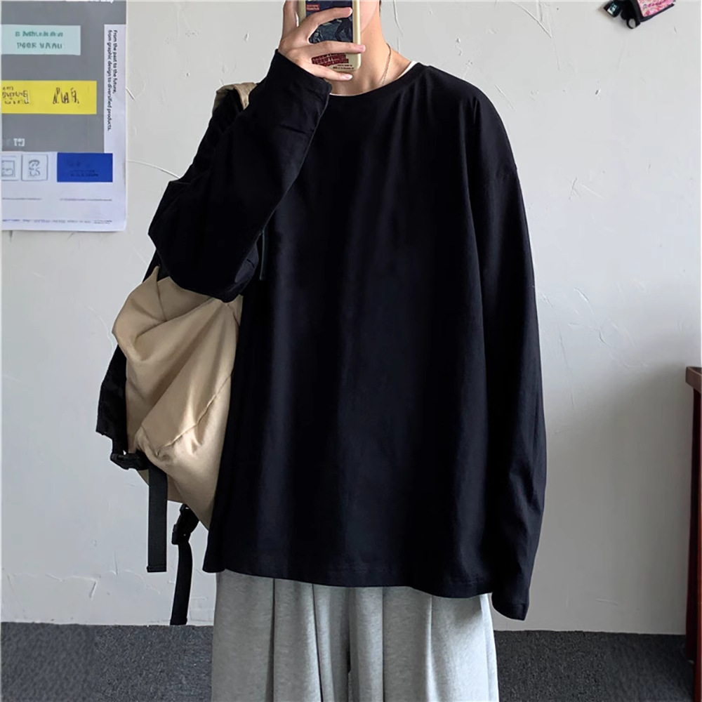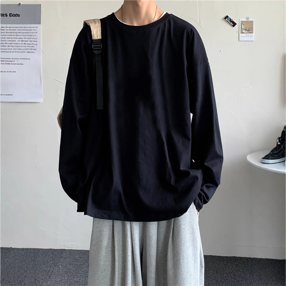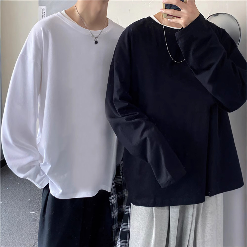 Главная страница > Однотонная мужская футболка с длинным рукавом, модный бренд, осенний корейский стиль, свободный крой, универсальная, в стиле ins, базовая футболка для пар.