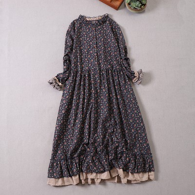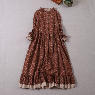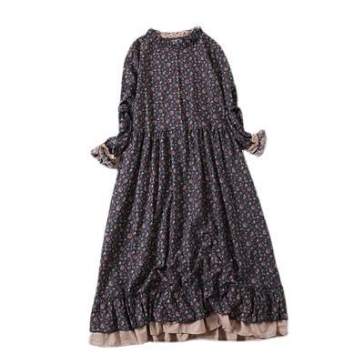 Главная страница > Весеннее новое стильное платье Mori для девочек в пасторальном стиле с цветочным принтом, женское свободное повседневное платье большого размера с грибком и длинными рукавами из хлопка и льна, длинная юбка