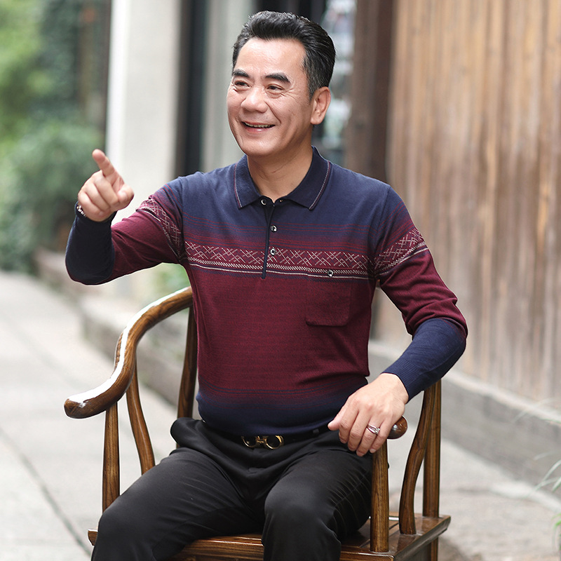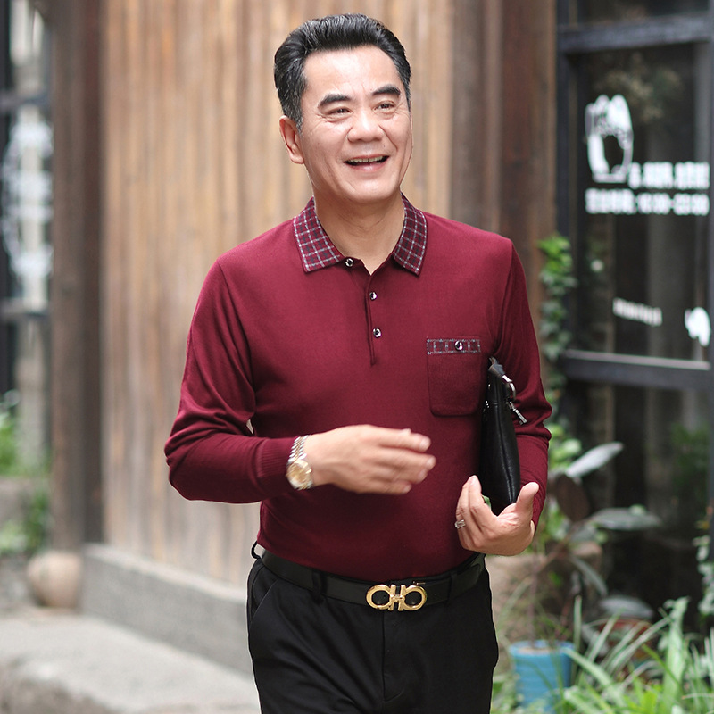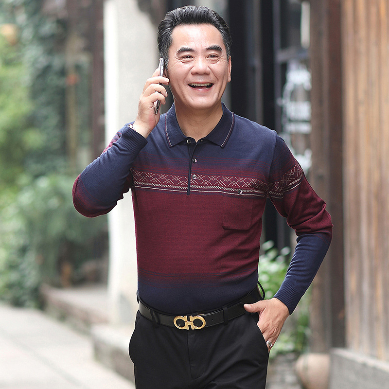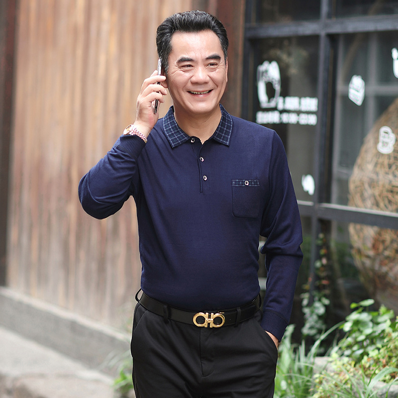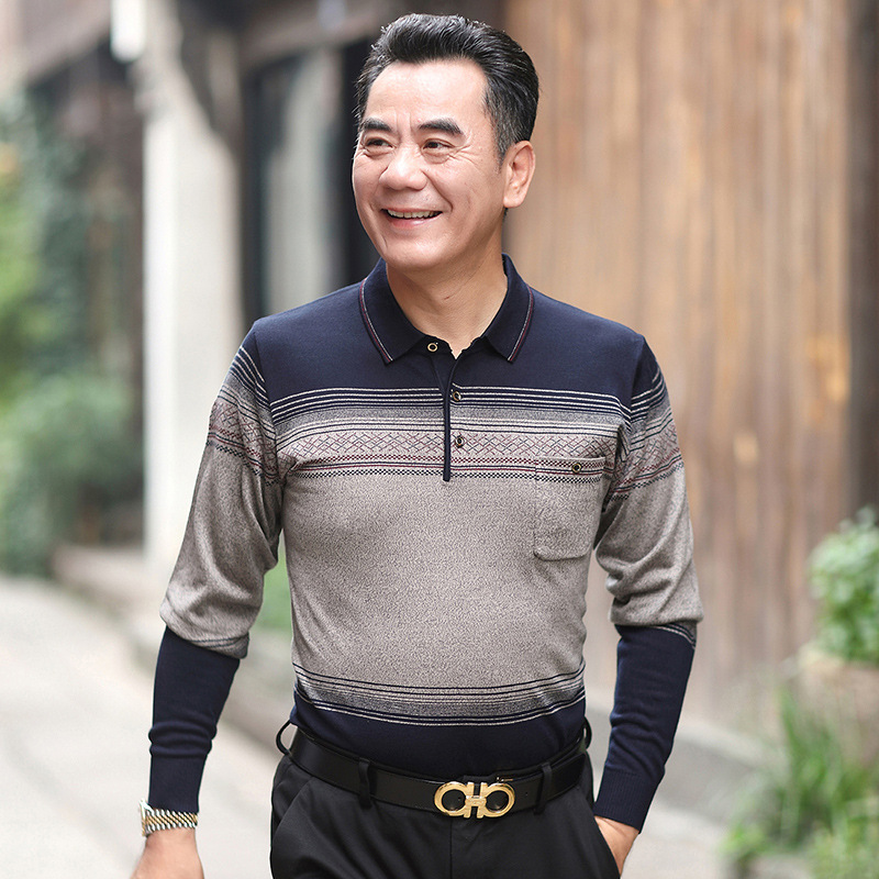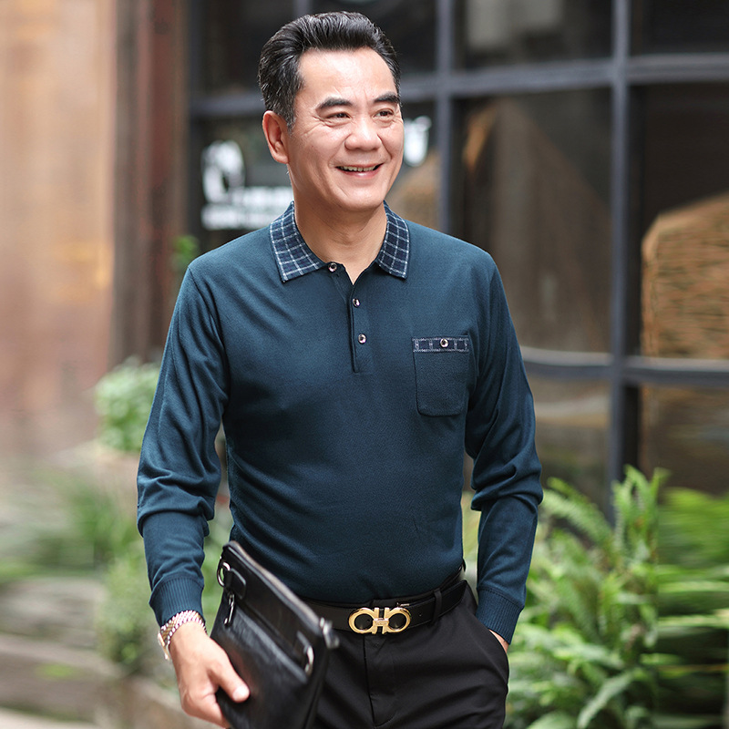Главная страница > Одежда для мужчин среднего и пожилого возраста, одежда для папы, осенняя одежда, мужская футболка с длинным рукавом среднего возраста, трикотажная Базовая рубашка с лацканами, Одежда Для дедушки