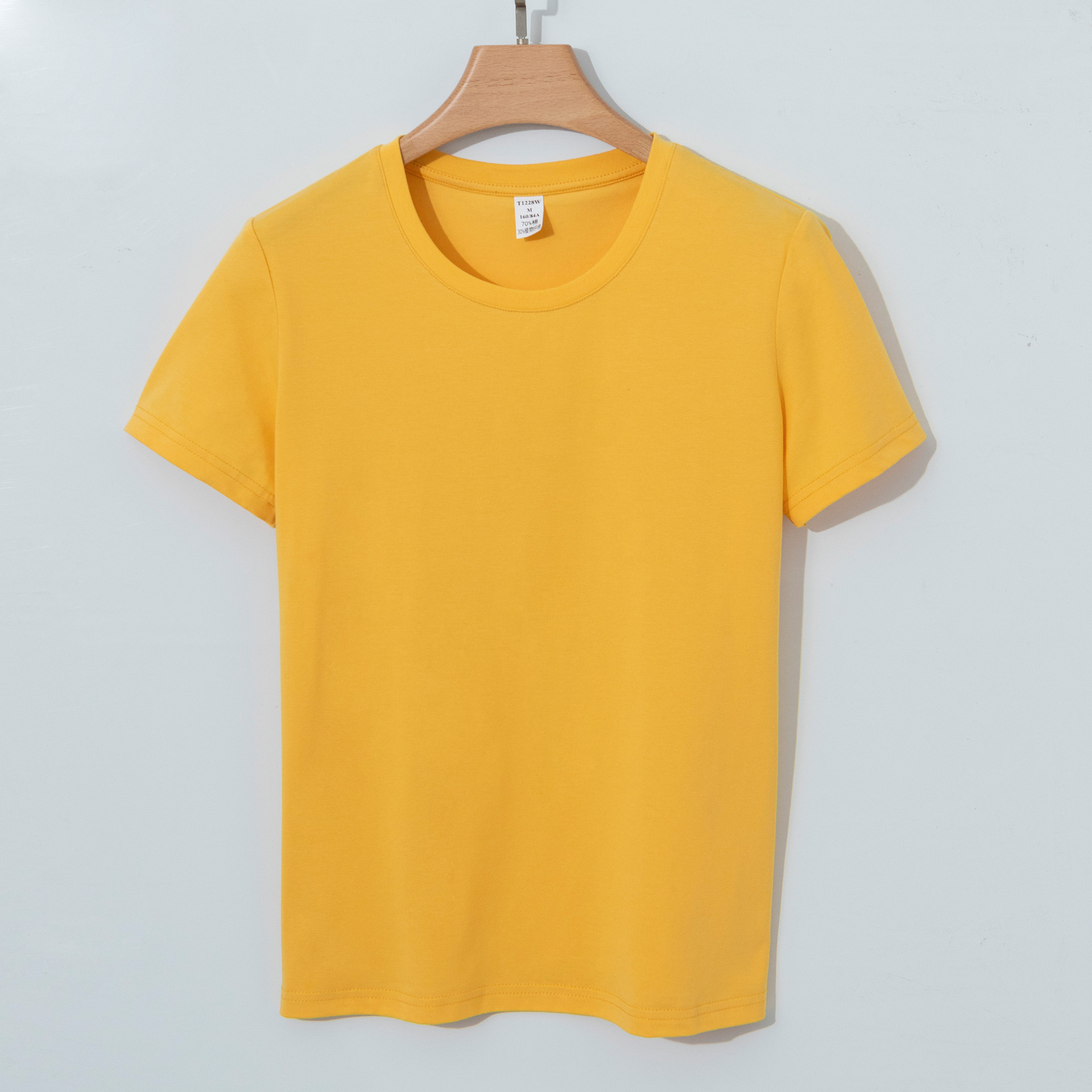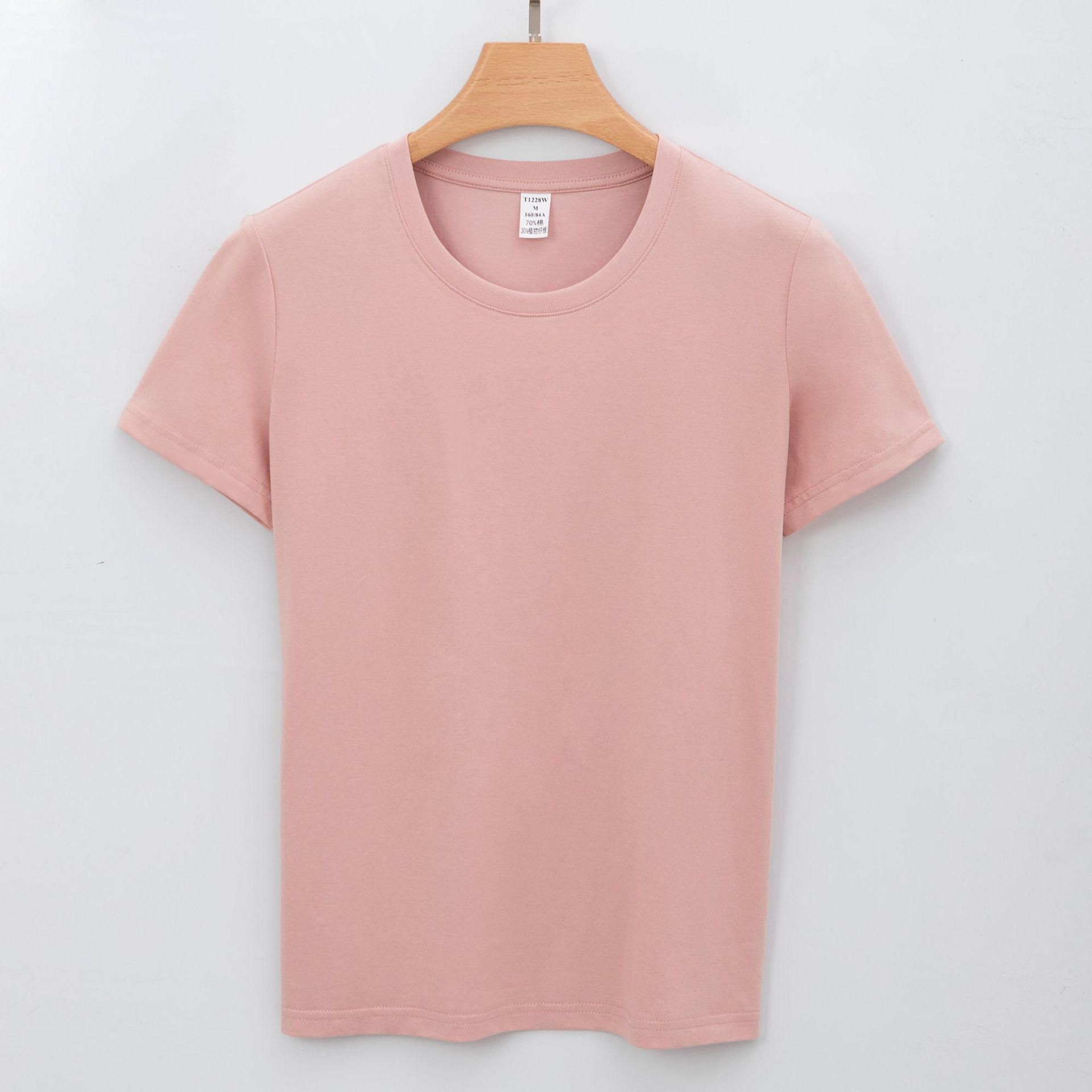 2024 новый стиль хлопчатобумажная футболка для женщин с короткими рукавами сплошной цвет полукруга с круглым вырезом