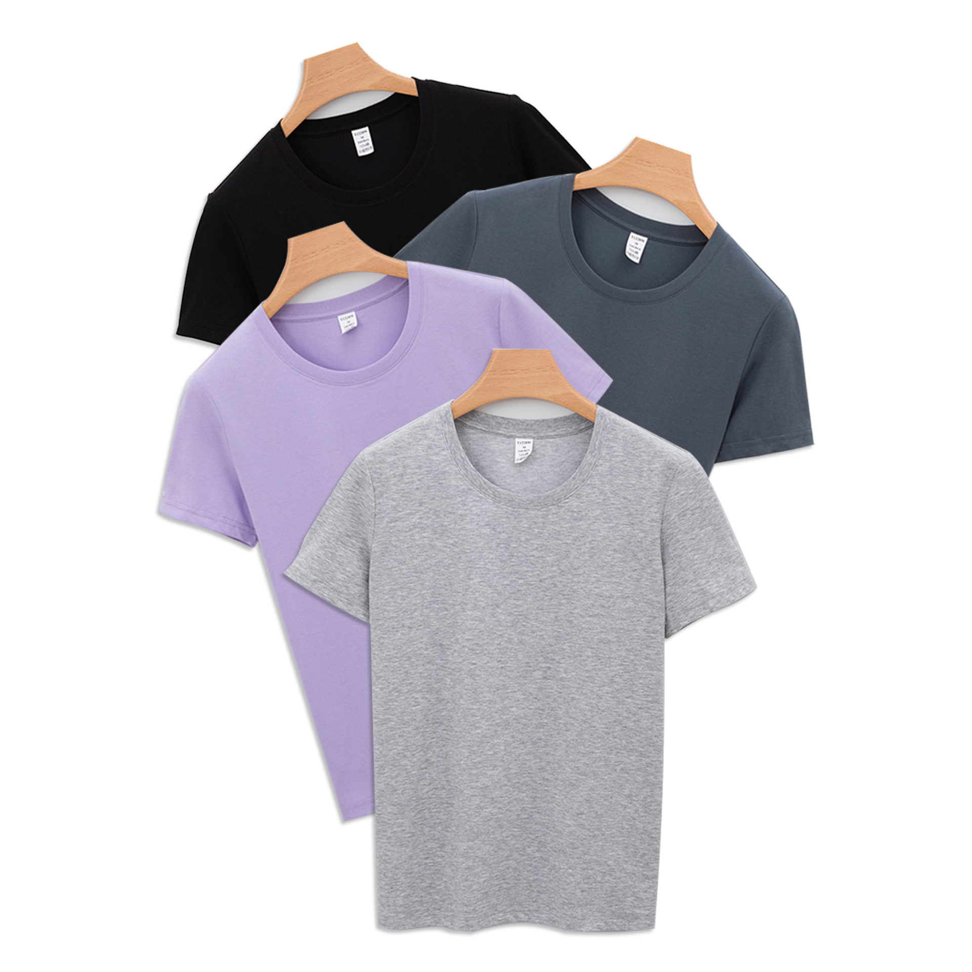 Главная страница > 2024 новый стиль хлопчатобумажная футболка для женщин с короткими рукавами сплошной цвет полукруга с круглым вырезом