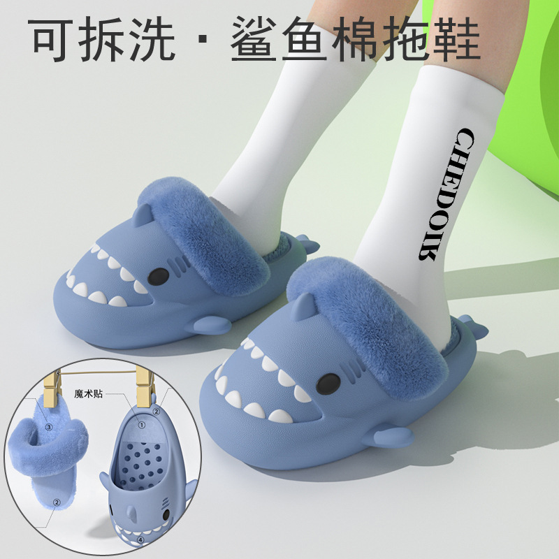 Главная страница > Хлопковые тапочки с трансграничными акулами, зимние мужские теплые хлопковые тапочки для дома, съемные плюшевые тапочки для женщин