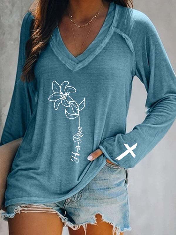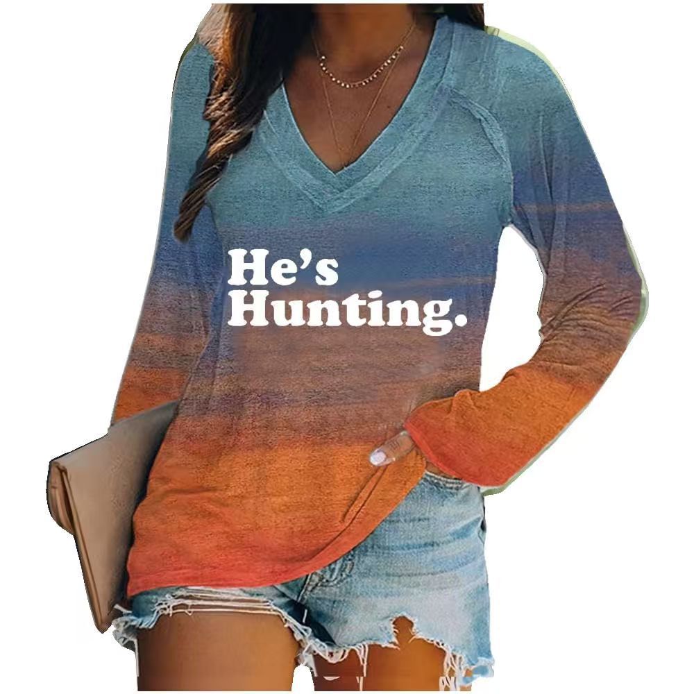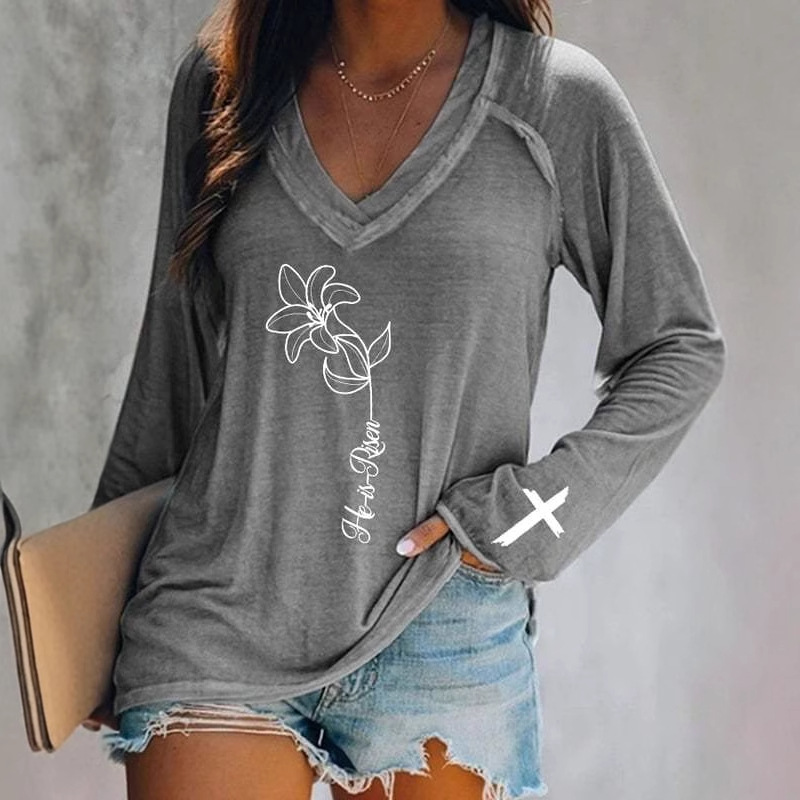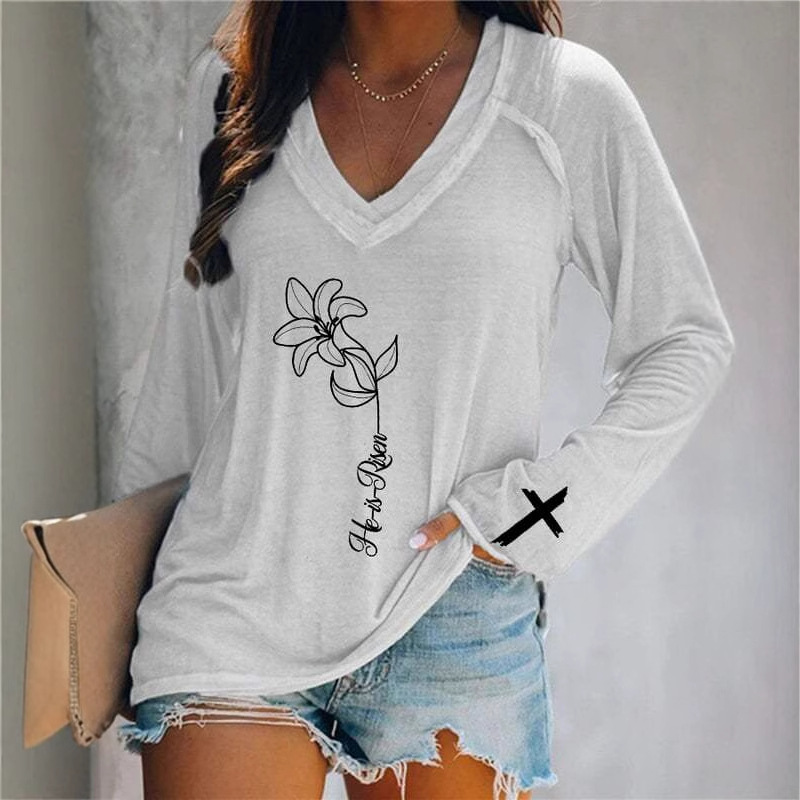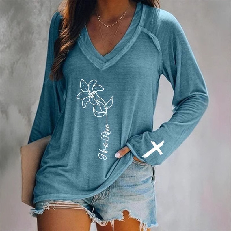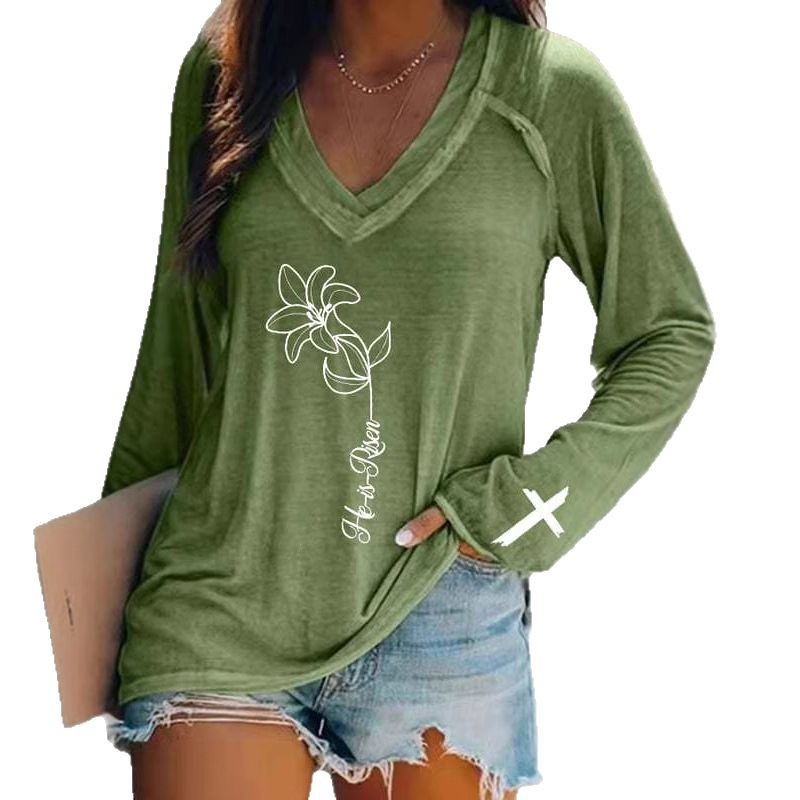 Главная страница > Европейские и американские трансграничные Amazon независимые станции 3D цифровая печать пасхальная женская футболка с V-образным вырезом с длинным рукавом фабрика прямых продаж