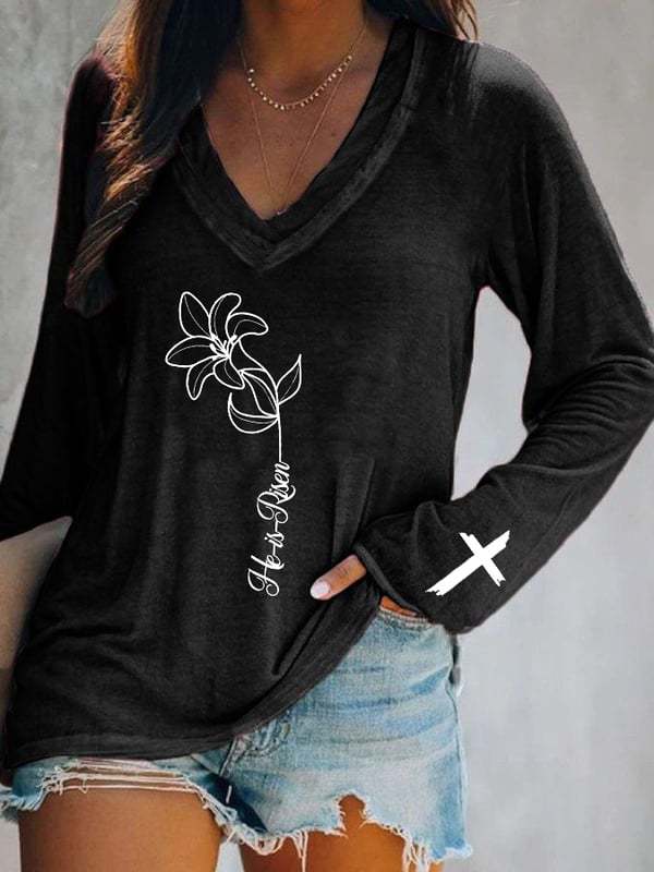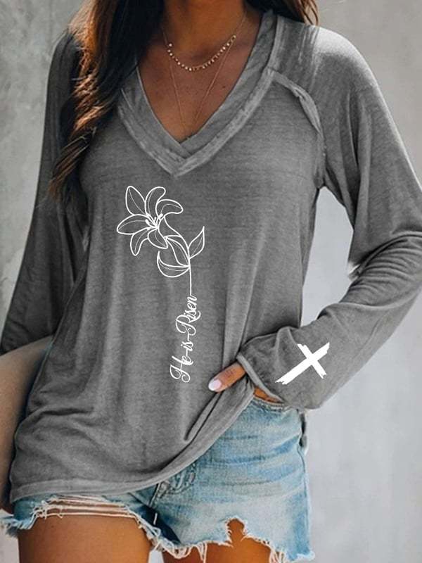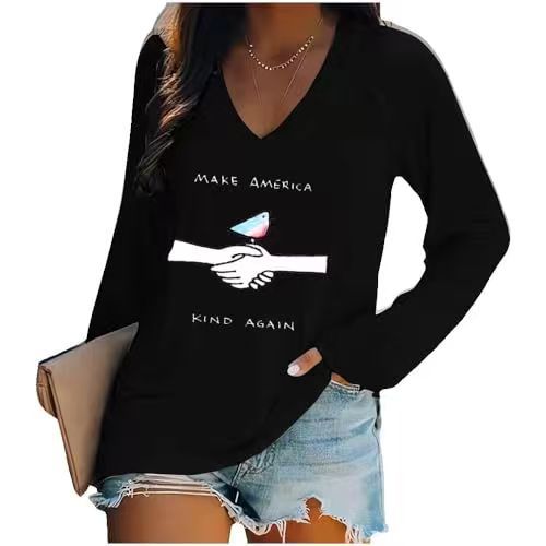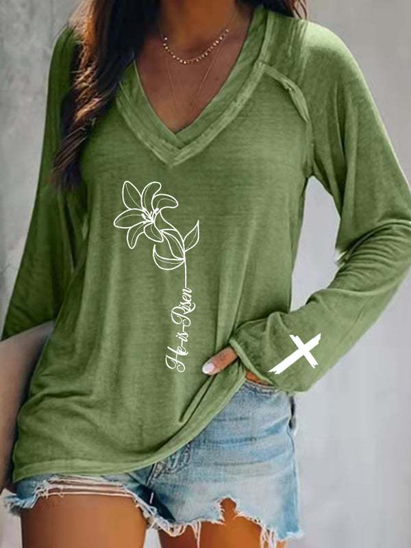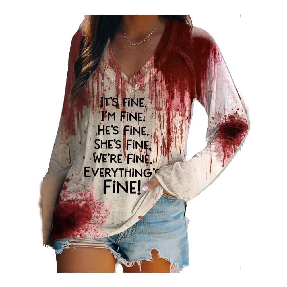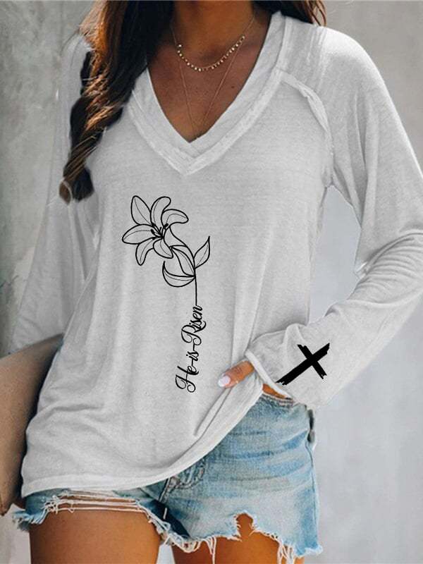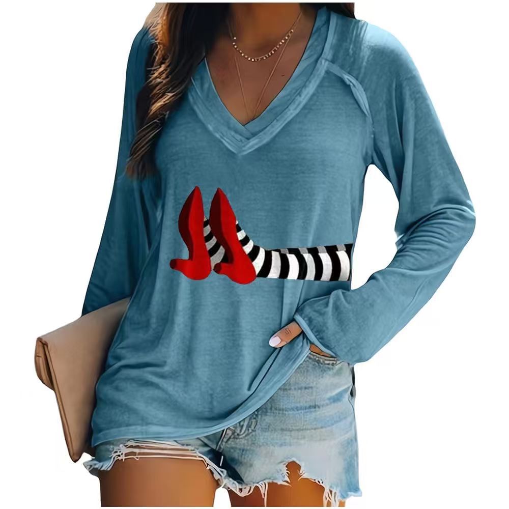 Главная страница > Европейские и американские трансграничные Amazon независимые станции 3D цифровая печать пасхальная женская футболка с V-образным вырезом с длинным рукавом фабрика прямых продаж