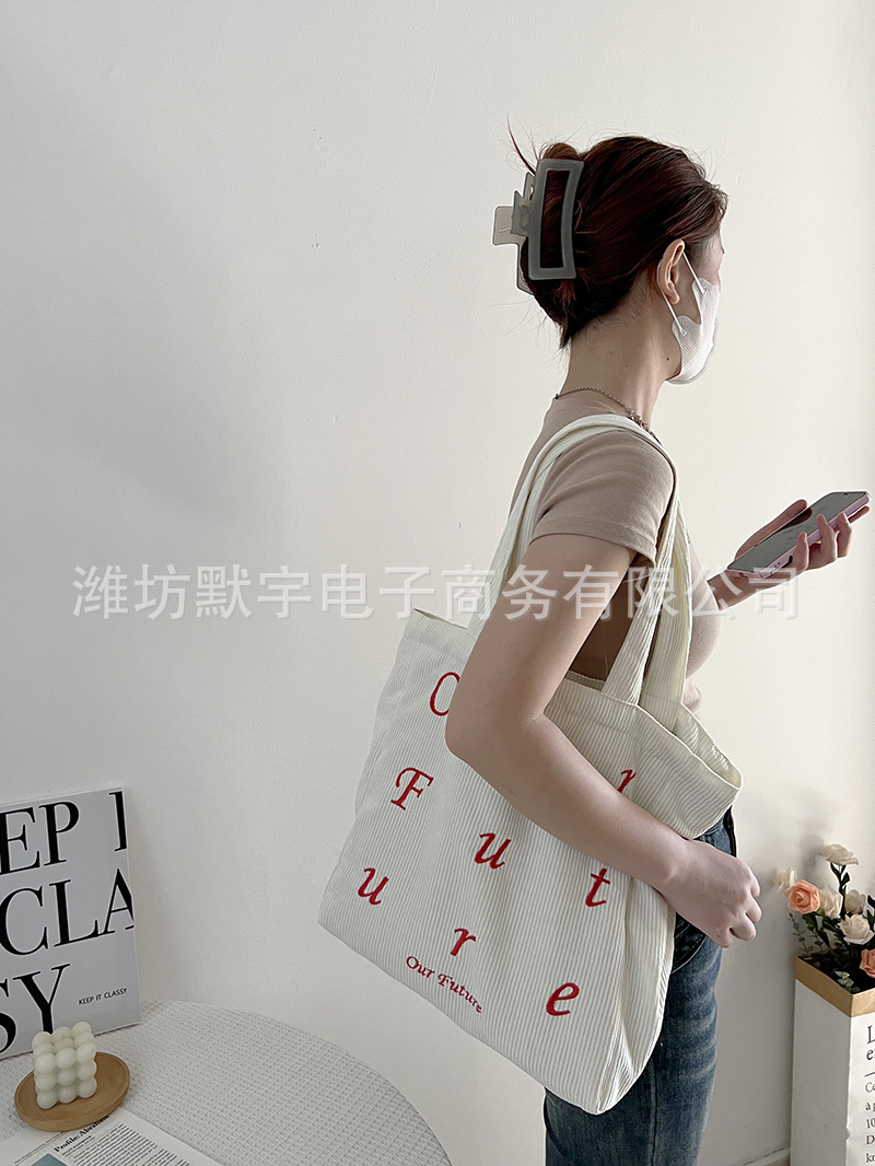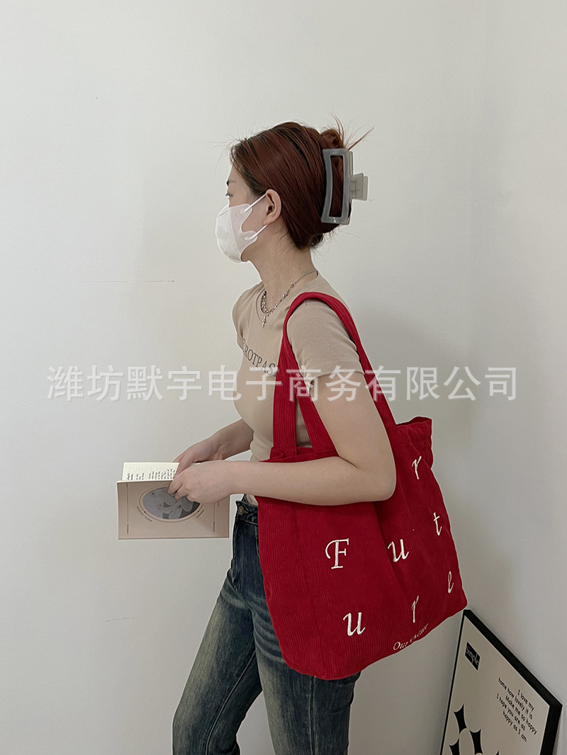 Главная страница > Bufan Liangpin/сумка через плечо с Вышивкой Букв, Женская художественная Вельветовая Большая вместительная сумка-тоут, Портативная сумка для покупок