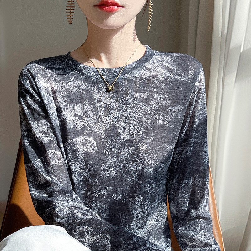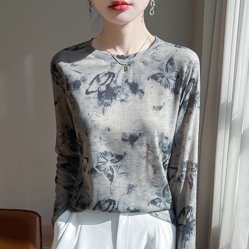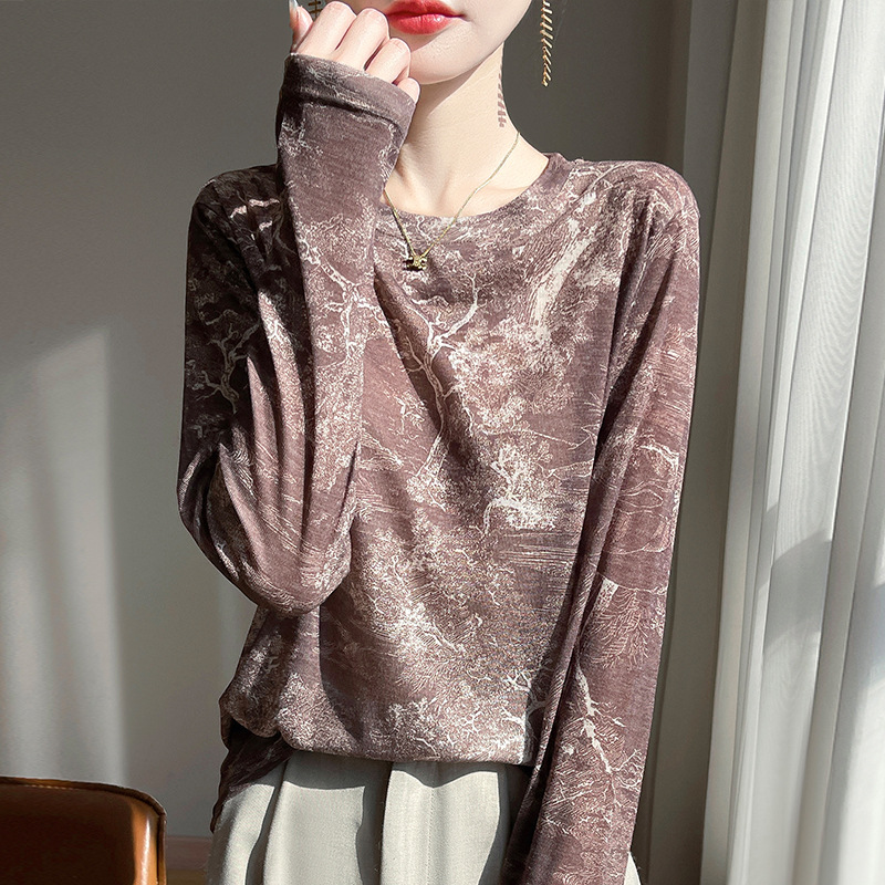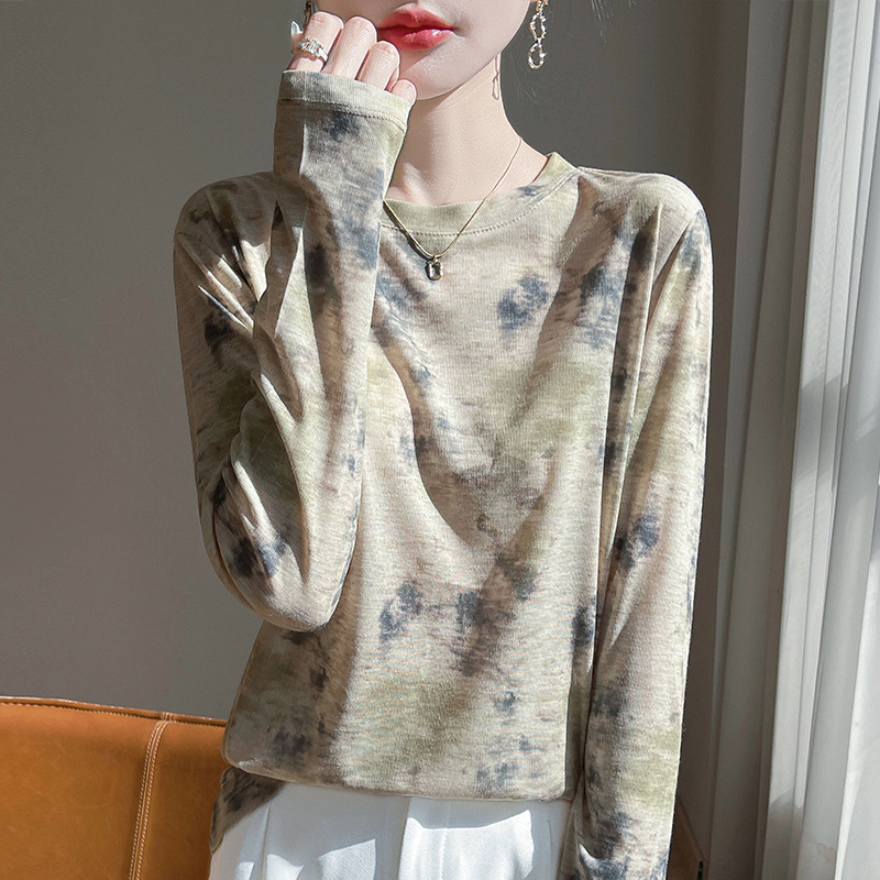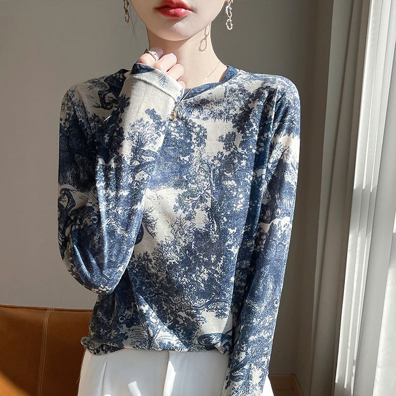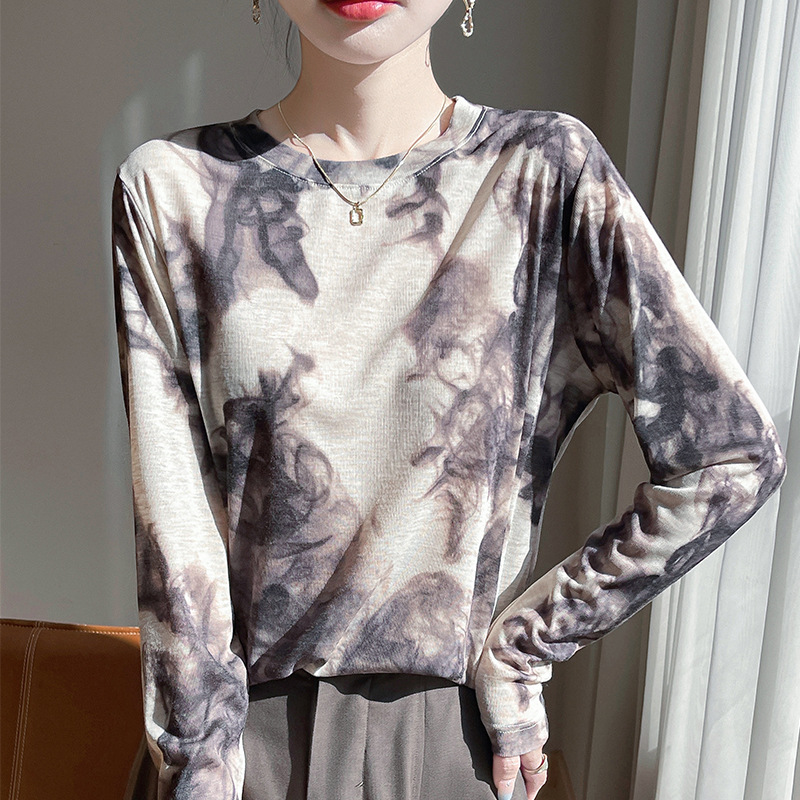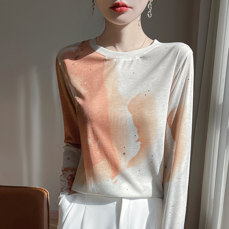 2025 новый трикотаж с чернилами и принтом нижний топ женский тонкий пуловер снаружи носить женские футболки с длинными рукавами