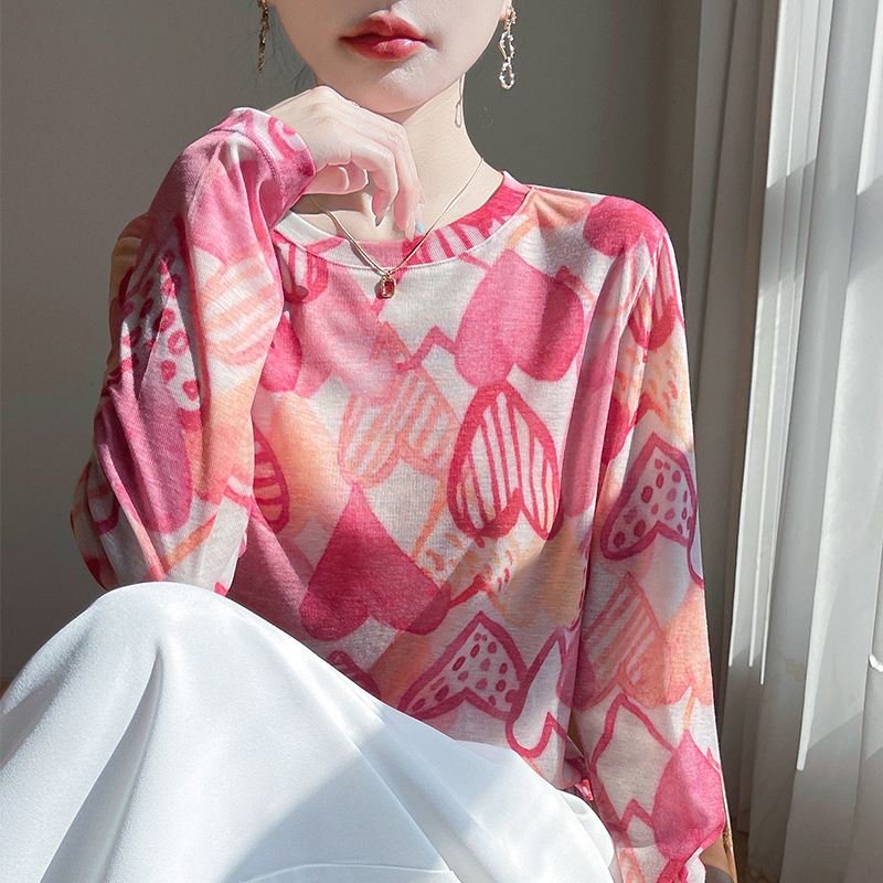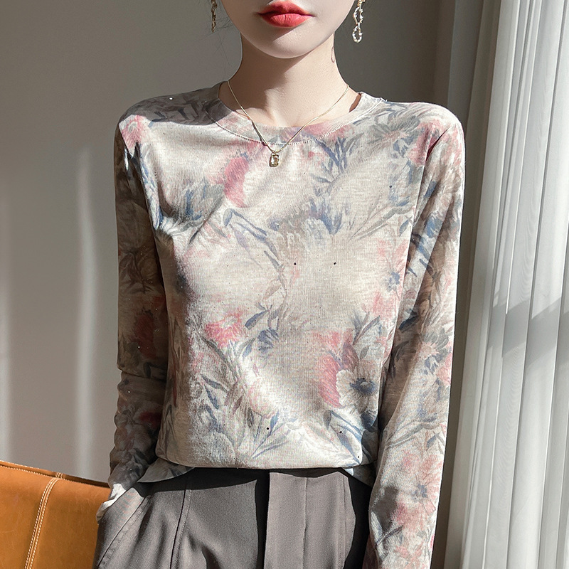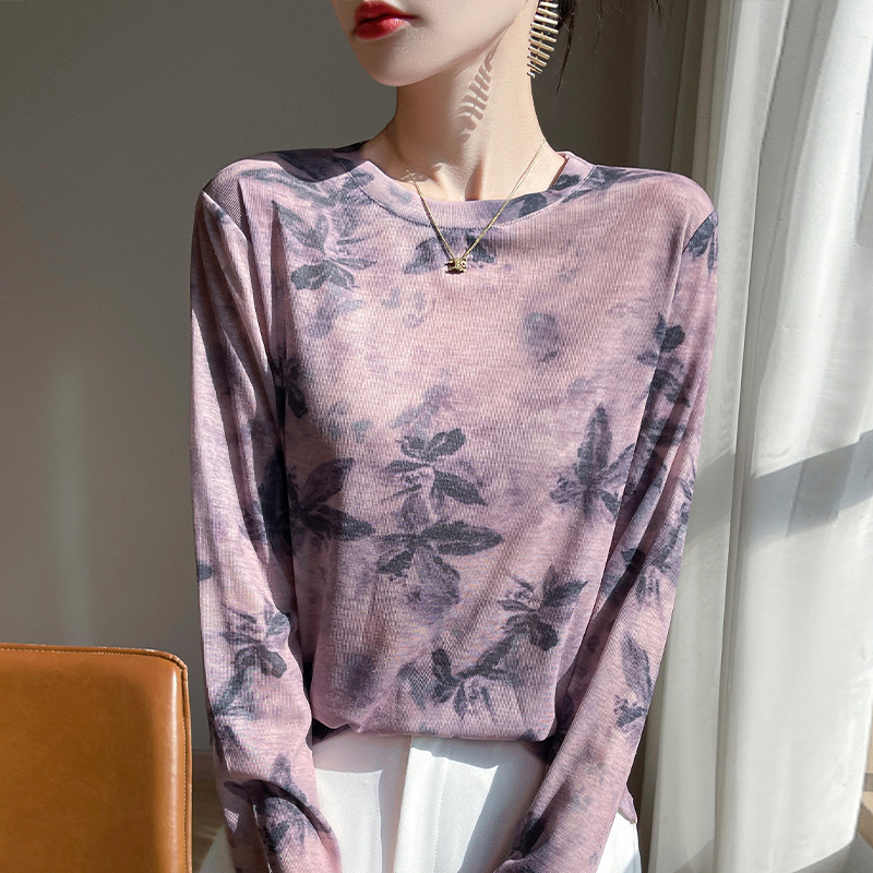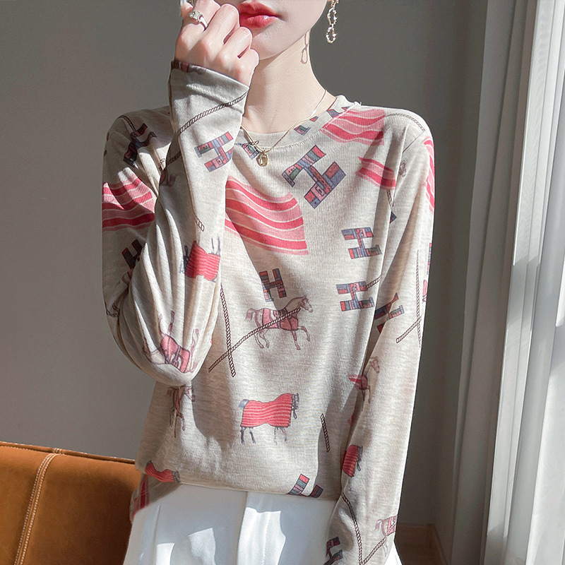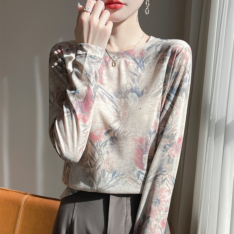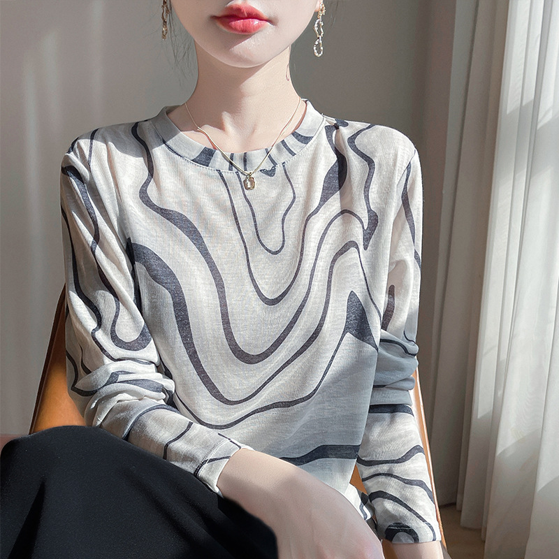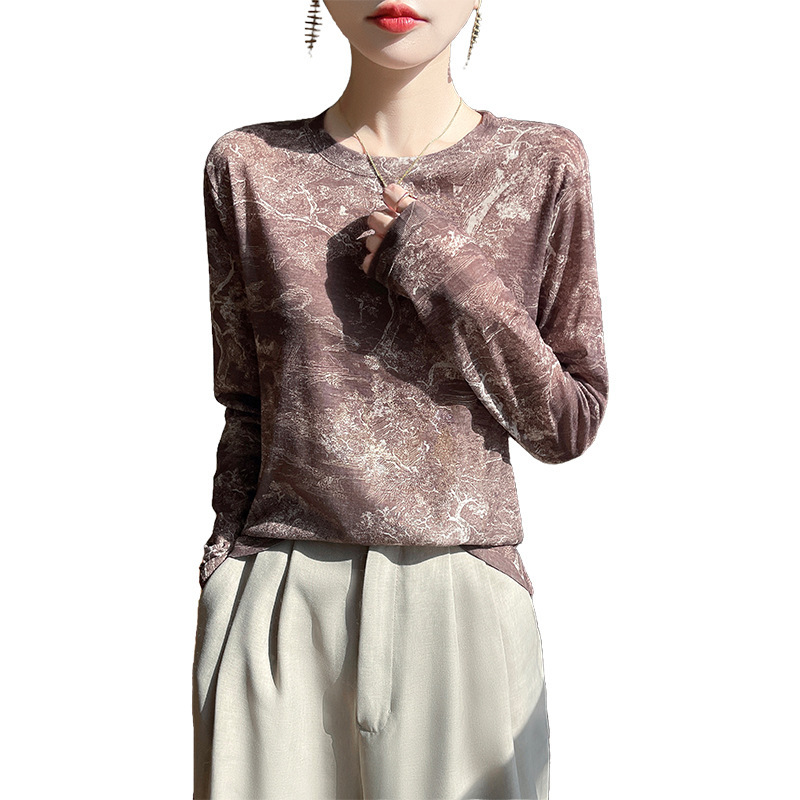 2025 новый трикотаж с чернилами и принтом нижний топ женский тонкий пуловер снаружи носить женские футболки с длинными рукавами