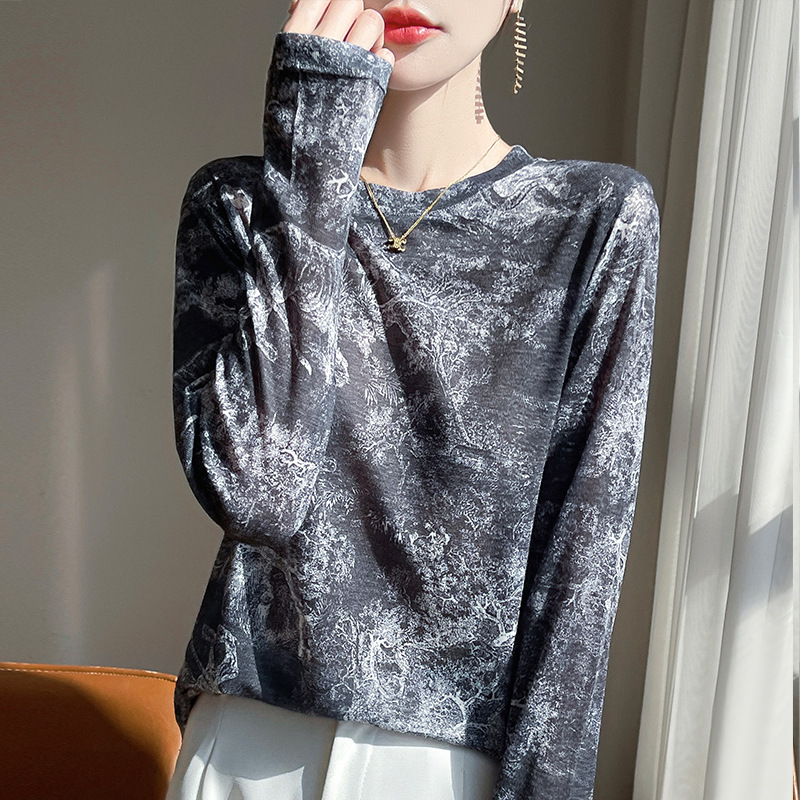 Главная страница > 2025 новый трикотаж с чернилами и принтом нижний топ женский тонкий пуловер снаружи носить женские футболки с длинными рукавами