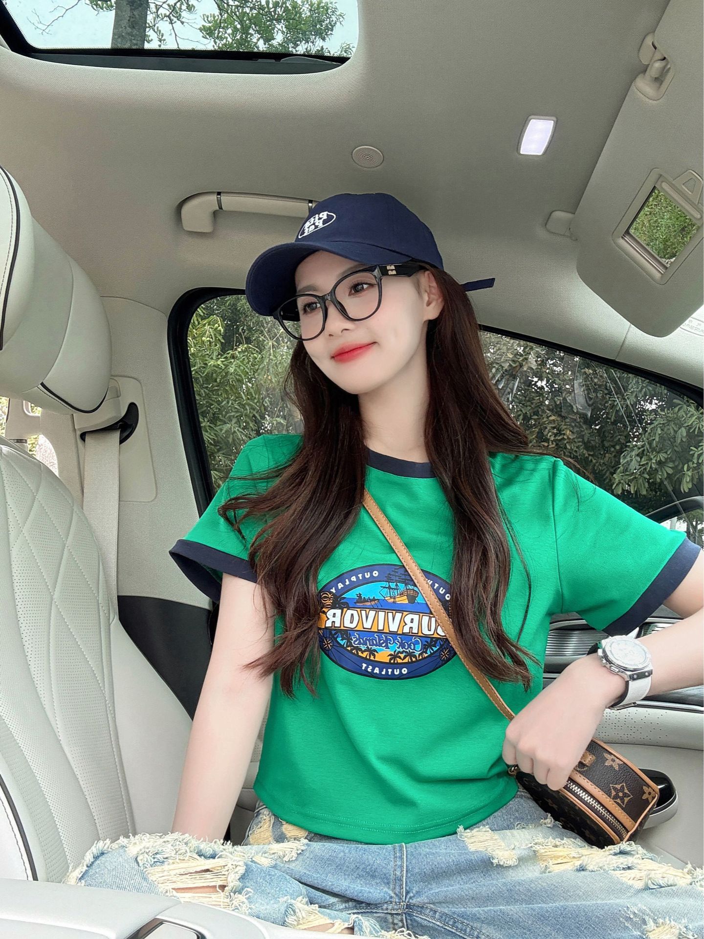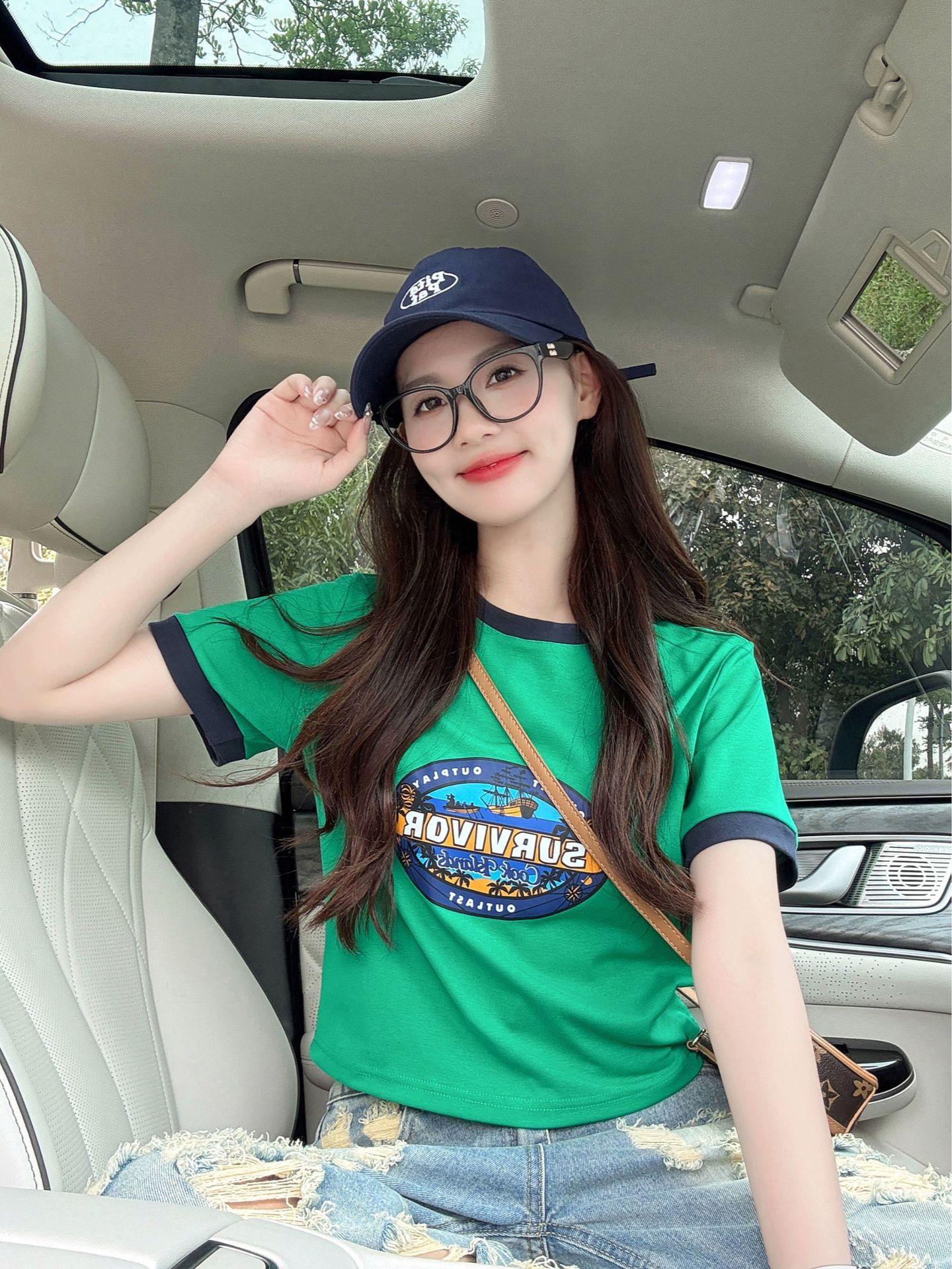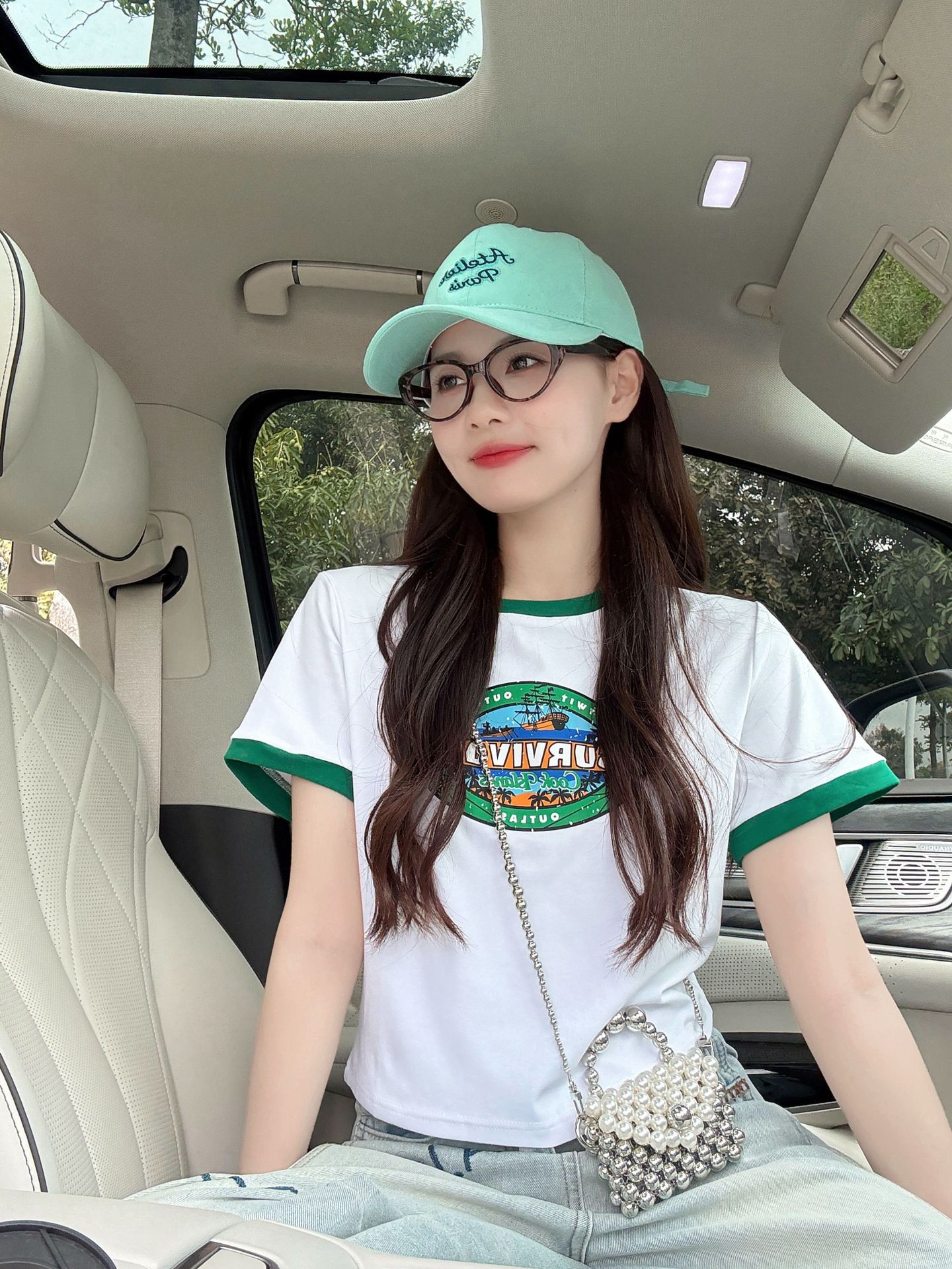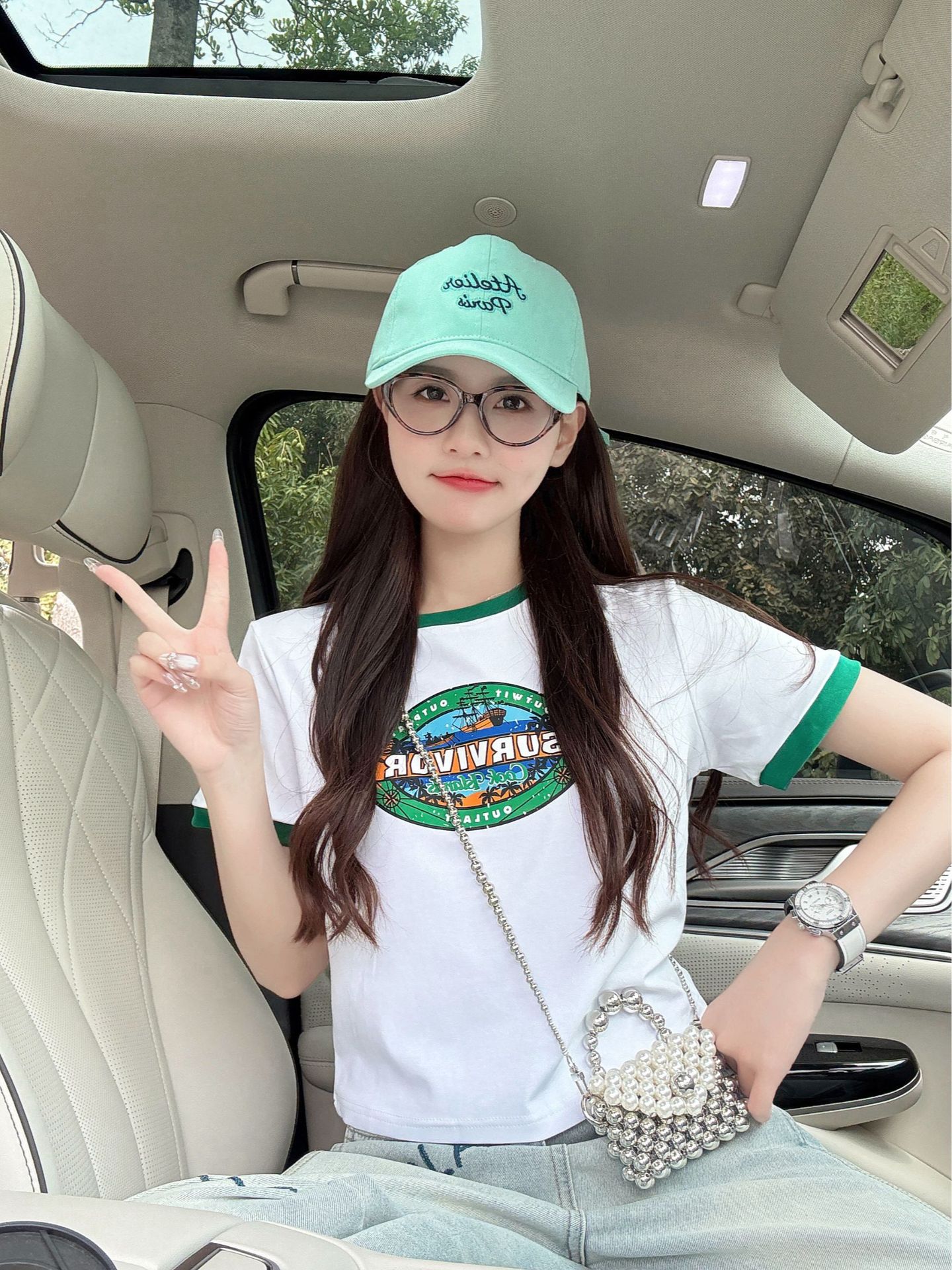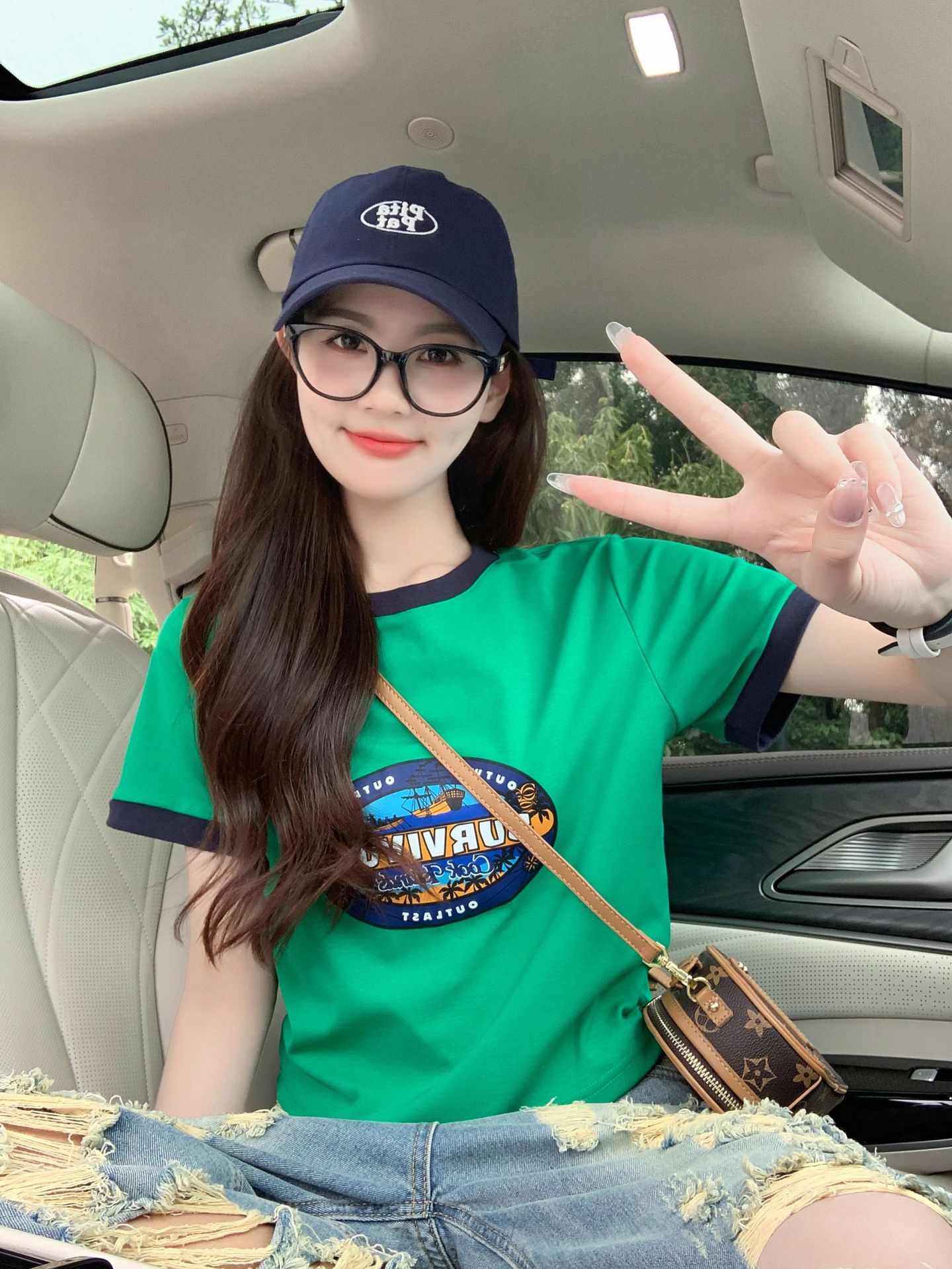 Главная страница > Тонкая короткая футболка контрастного цвета, женская летняя футболка с короткими рукавами, популярный дизайн, утягивающая рубашка с половиной рукавов, модный топ