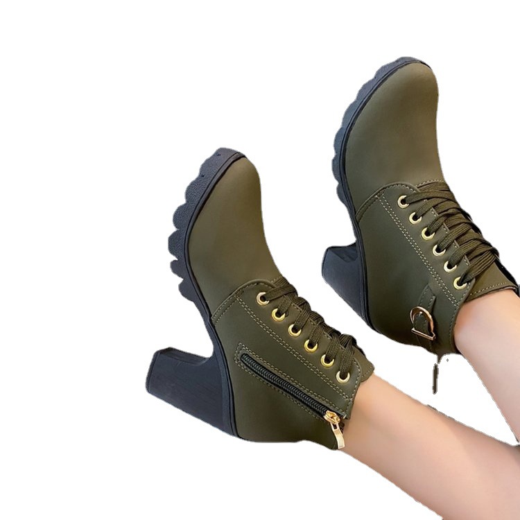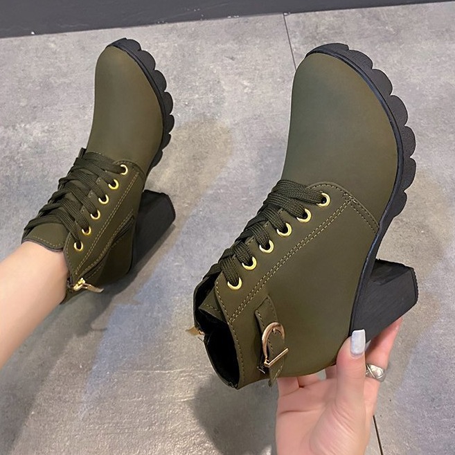Ботинки Мартин для женщин, новая коллекция зима 2025, с круглым носком, на массивном каблуке, короткие, повседневные, на очень высоком каблуке, на шнуровке, оптом для Юго-Восточной Азии.