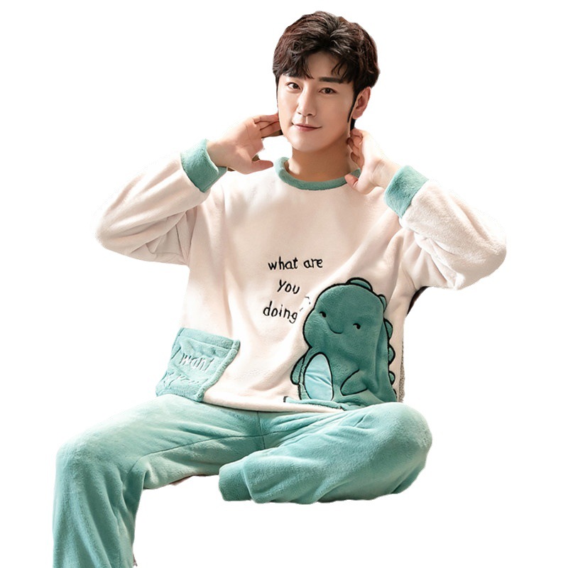 Осенне-зимние фланелевые пижамы для мальчиков Корейский тонкий флисовый подкладка с длинным рукавом, мультяшный мужской коралловый флисовый костюм