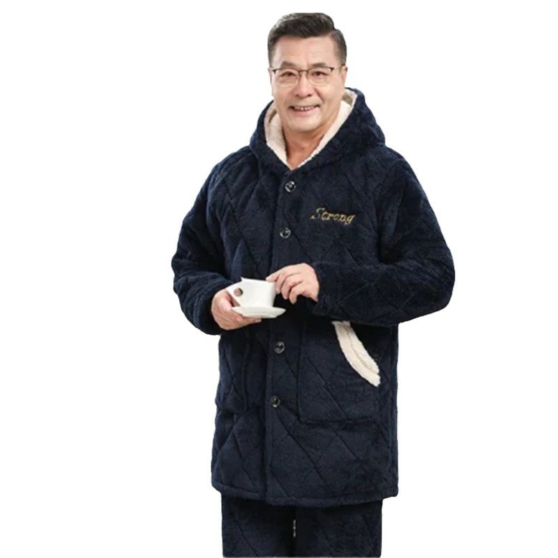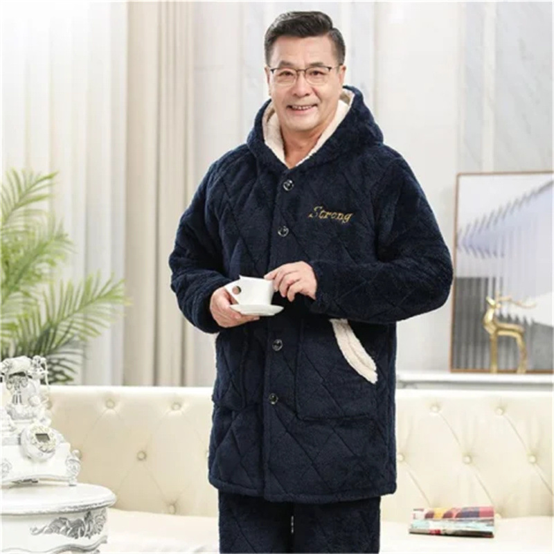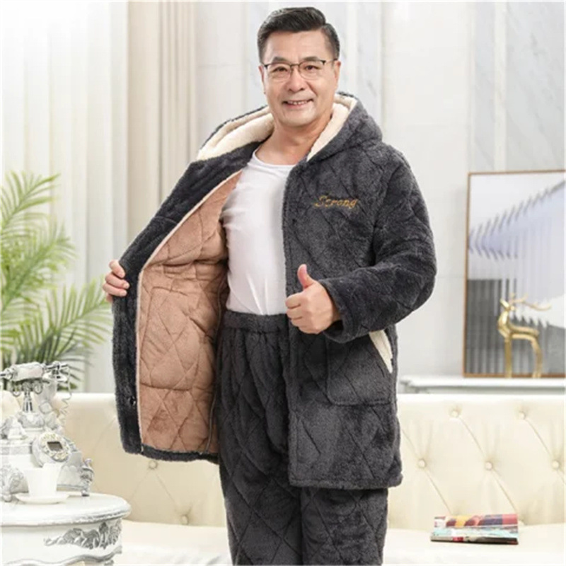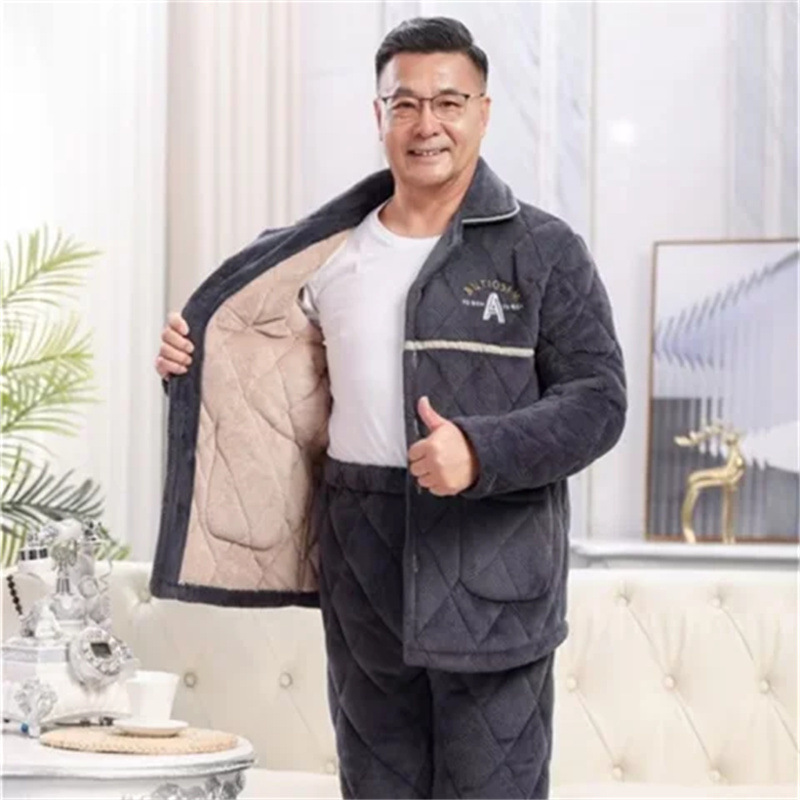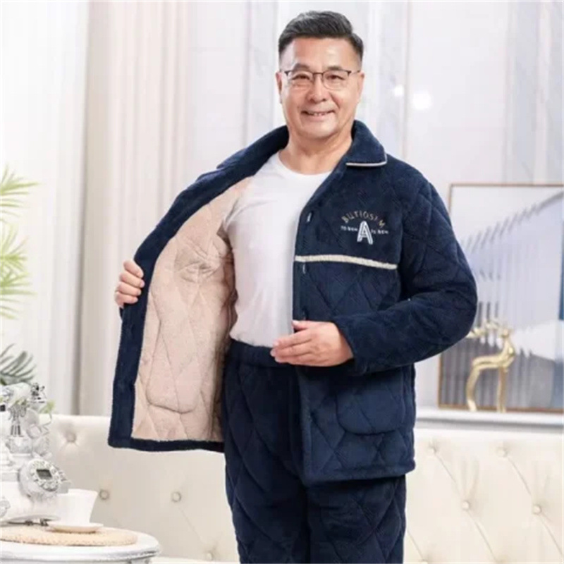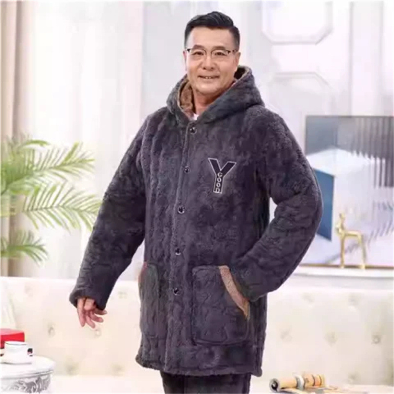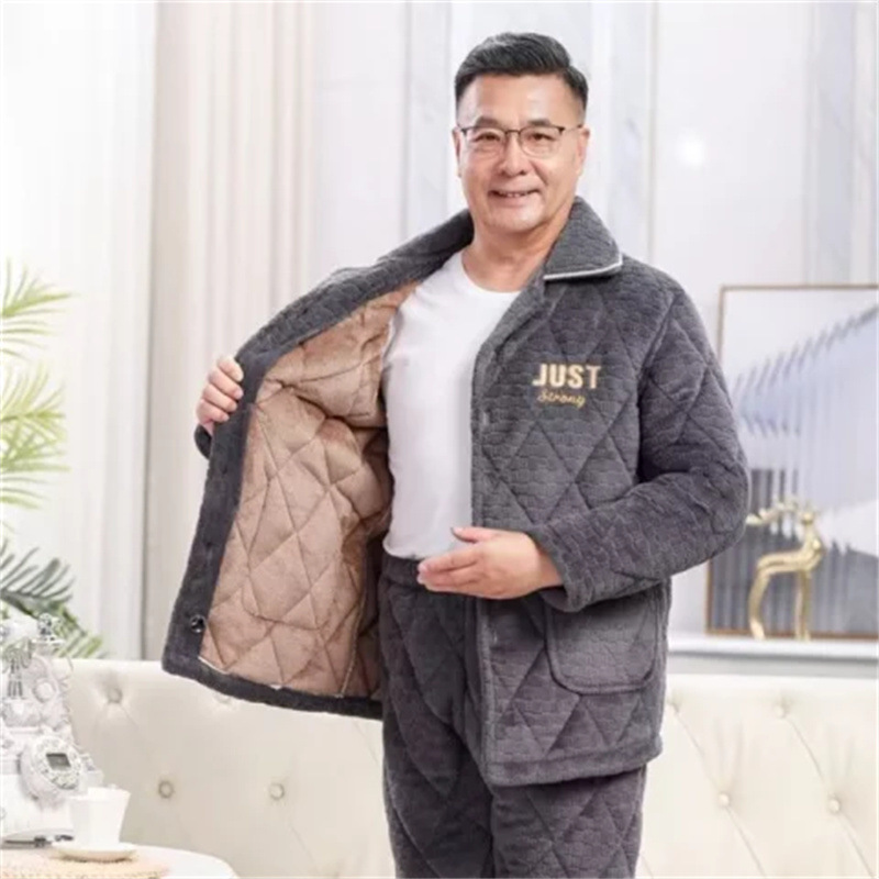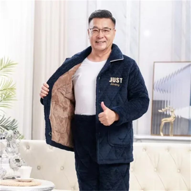 Средний и пожилой отец, отец, пижама мужской зимой, бархат, утолщение пожилого трехслойного хлопка плюс большой размер теплой домашней одежды