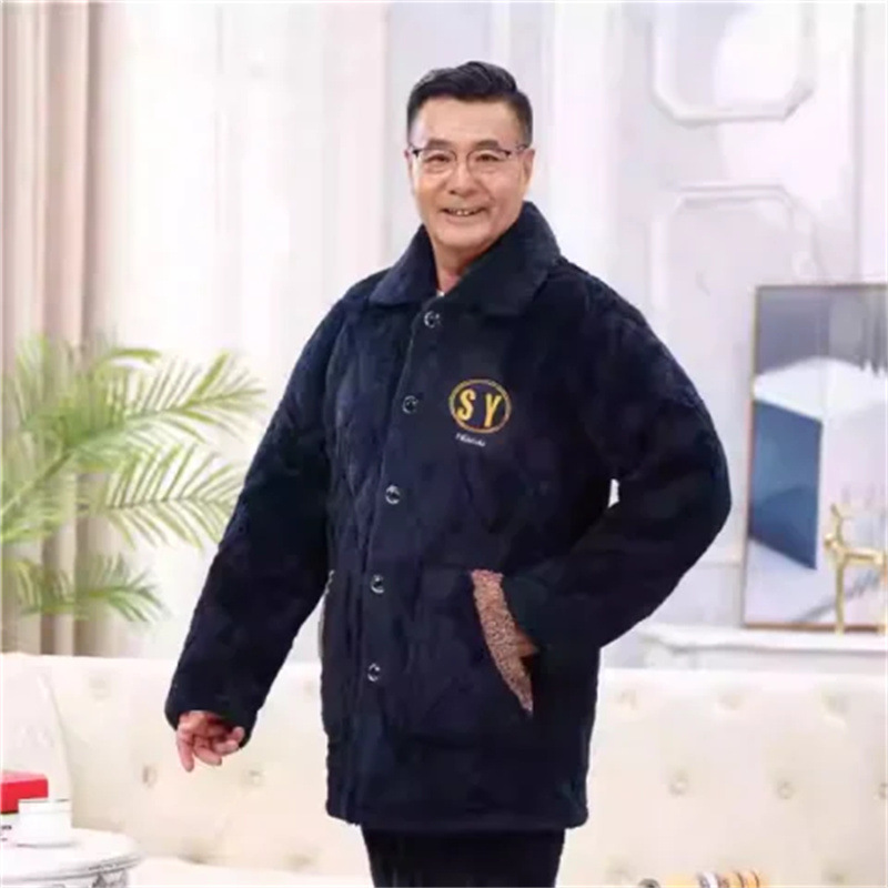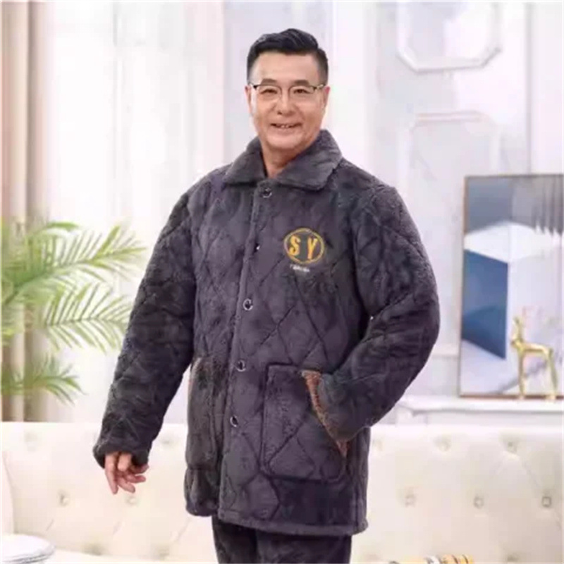 Главная страница > Средний и пожилой отец, отец, пижама мужской зимой, бархат, утолщение пожилого трехслойного хлопка плюс большой размер теплой домашней одежды