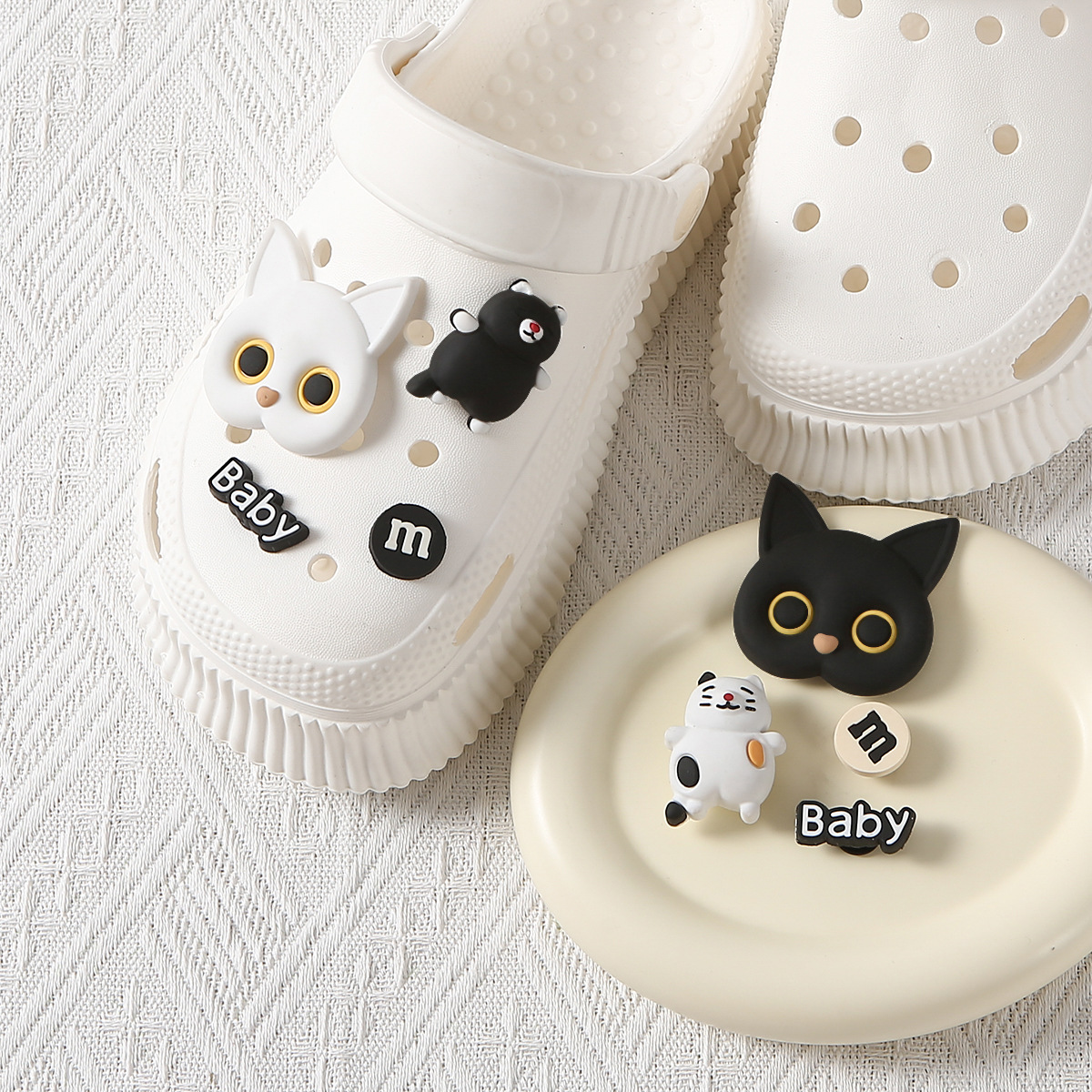 Главная страница > Милые черно-белые туфли с отстегивающимися отверстиями для кошек, обувь с героями мультфильмов, тапочки с цветами, аксессуары, пряжки для обуви в стиле ins