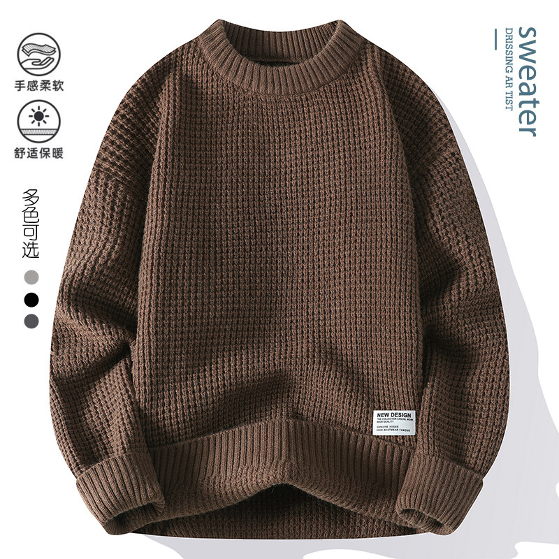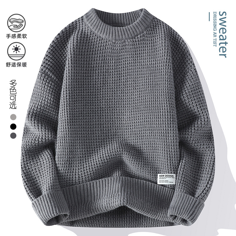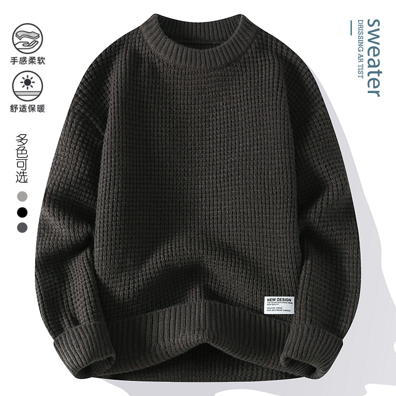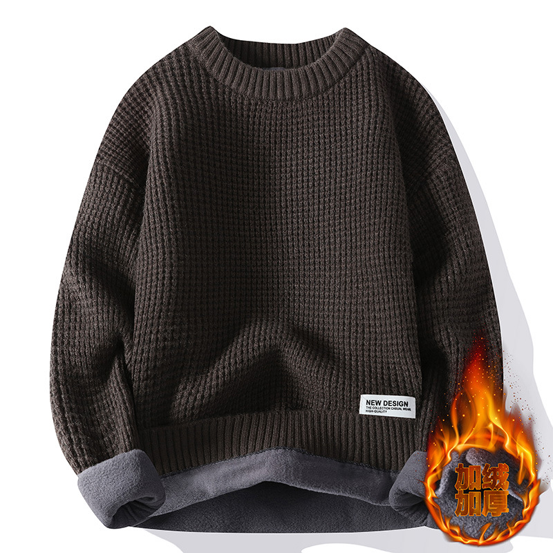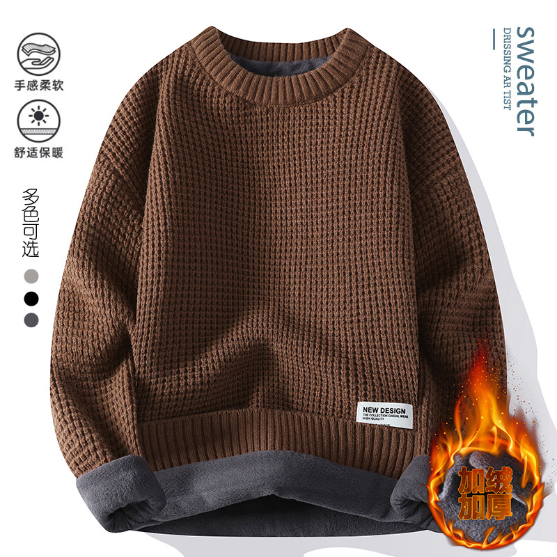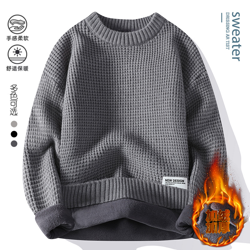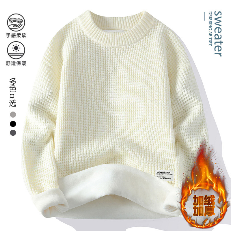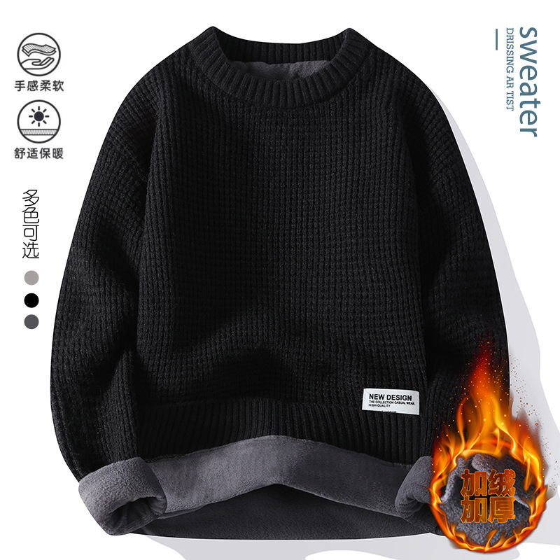 Главная страница > Мужской свитер с круглым вырезом на флисовой подкладке, однотонный, универсальный, модный, утолщенный, высококачественный трикотажный топ для студентов, коллекция 2025 года