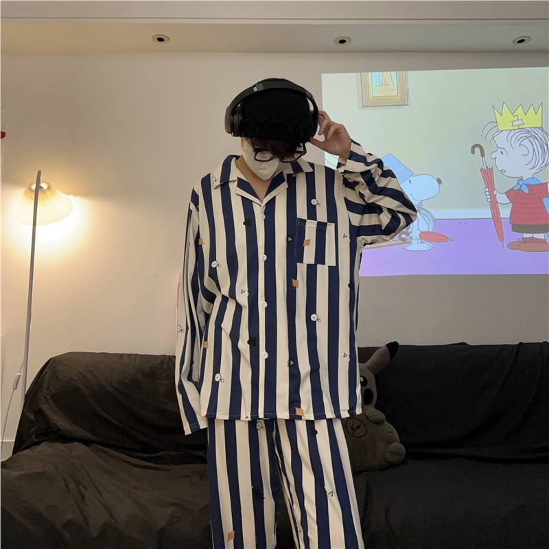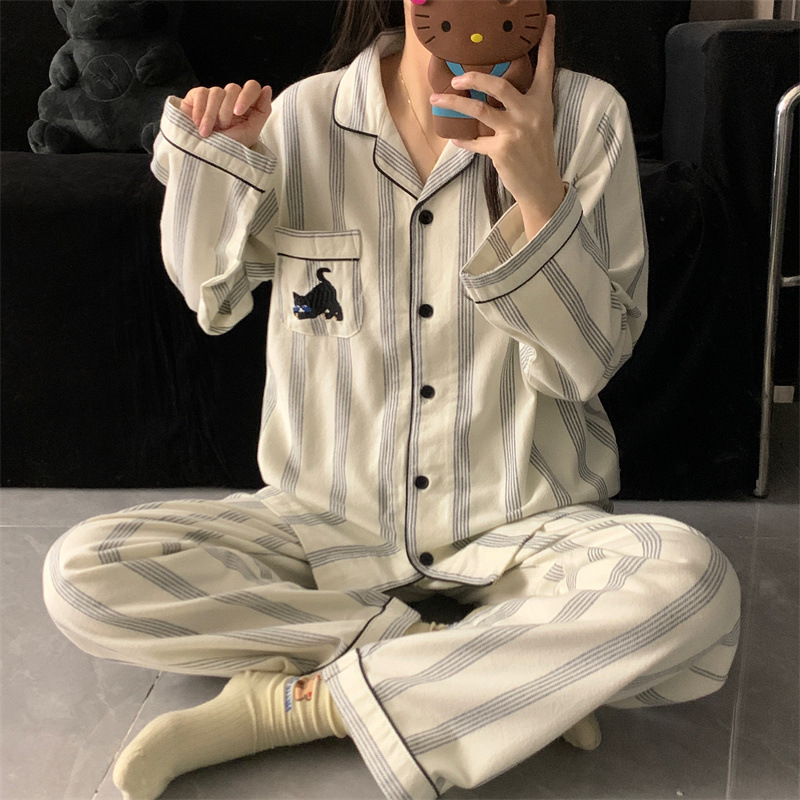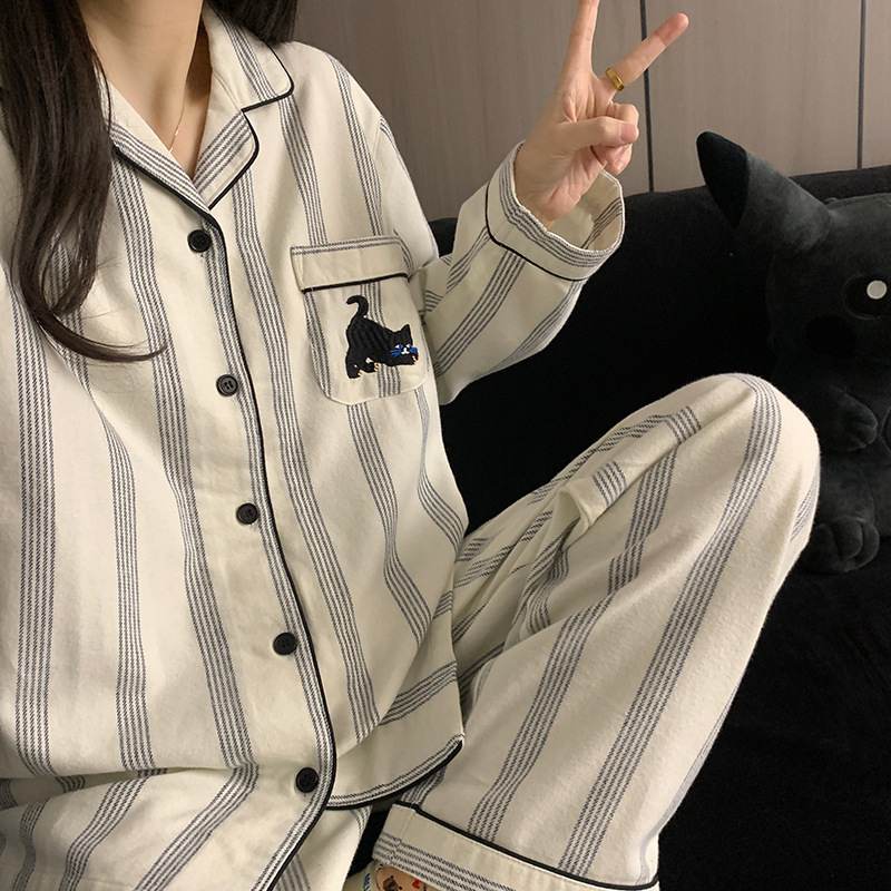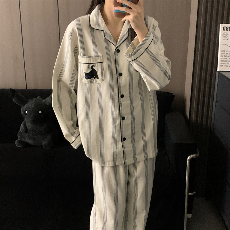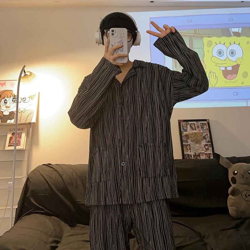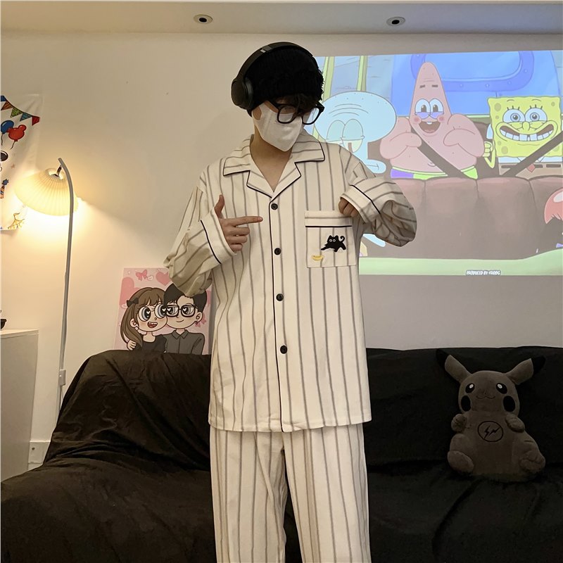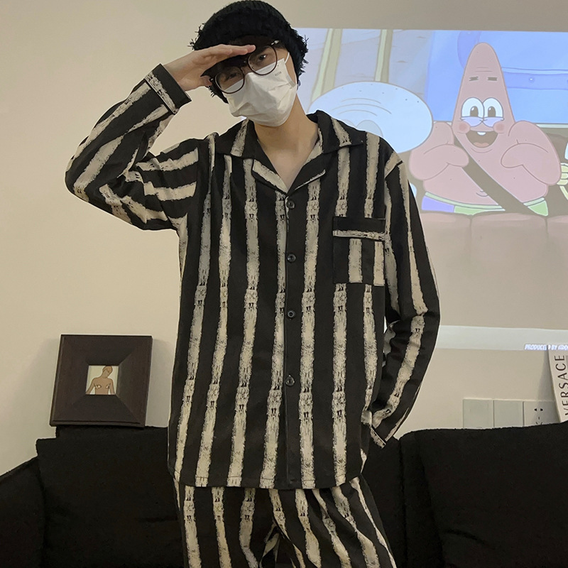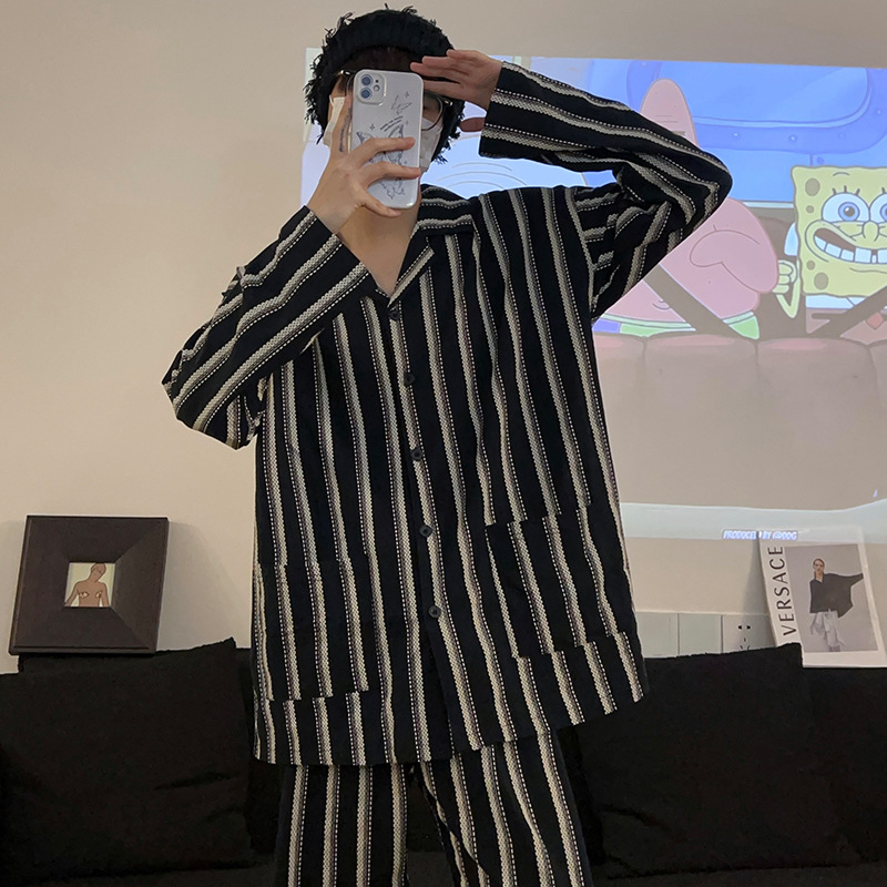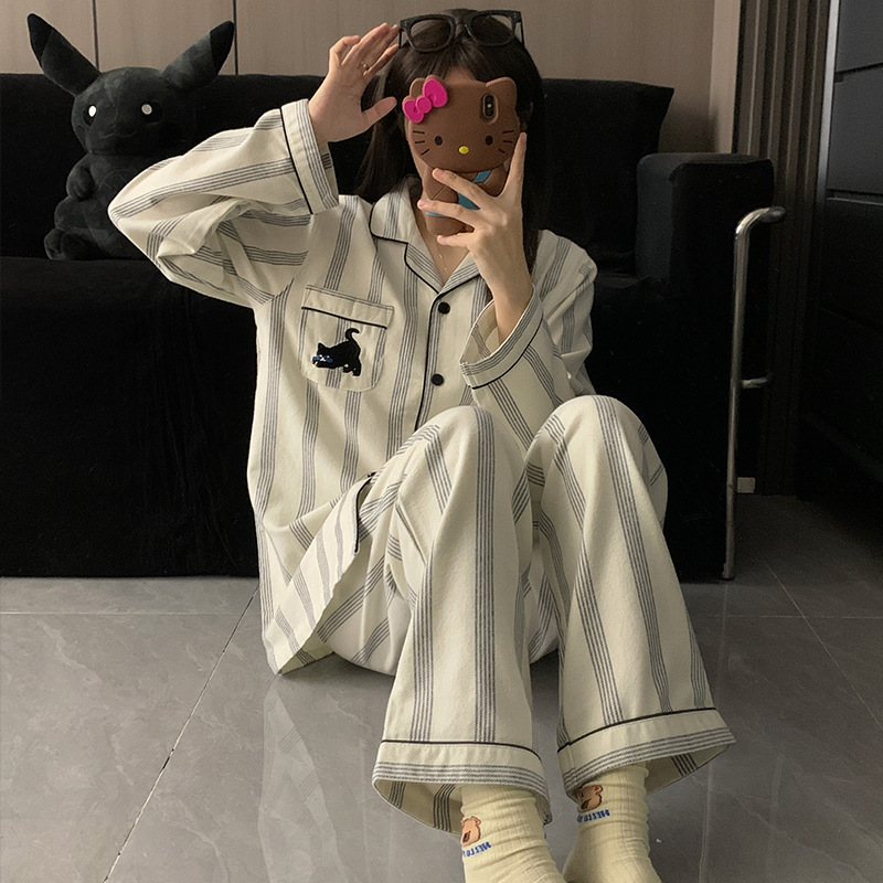 Главная страница > Корейский продвинутый смысл в полоску пижамы мужская весна осень черный кот хлопок с длинными рукавами набор из двух частей мужской подростковой домашней одежды