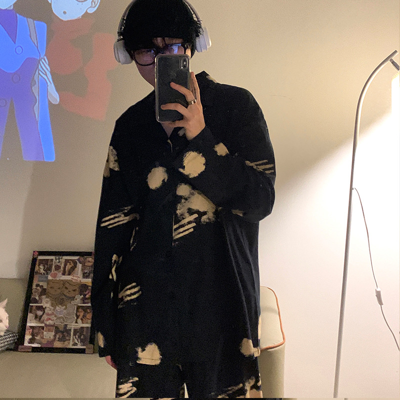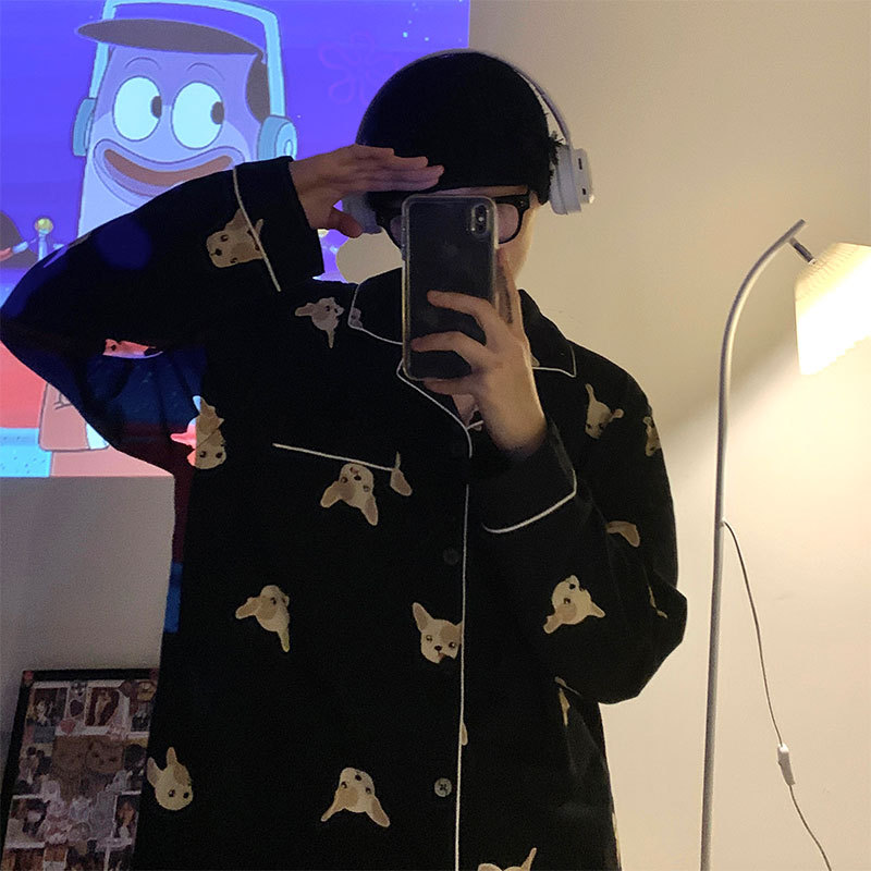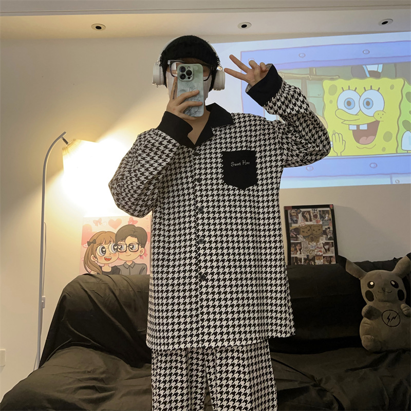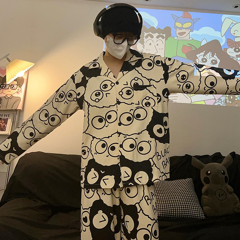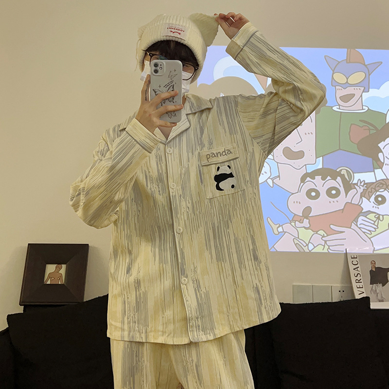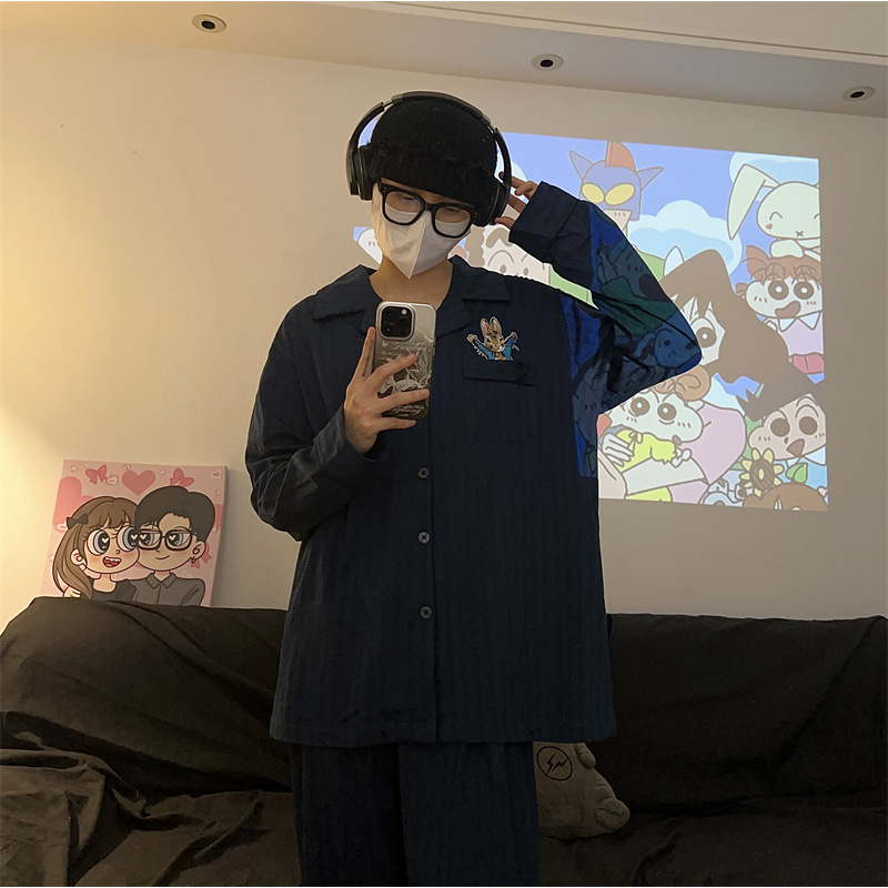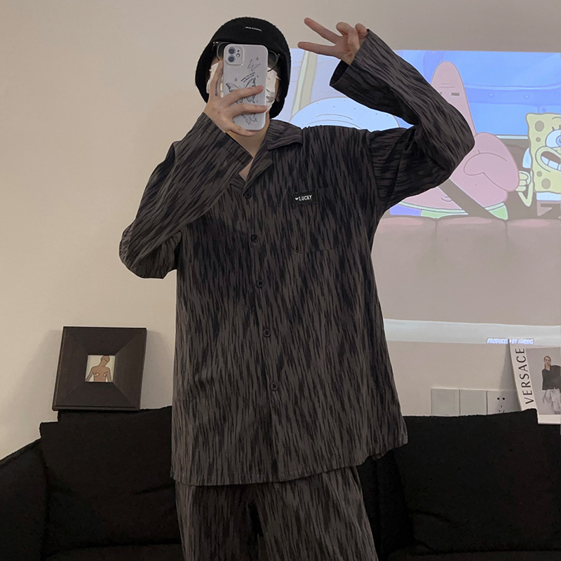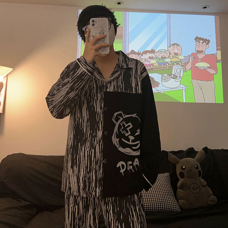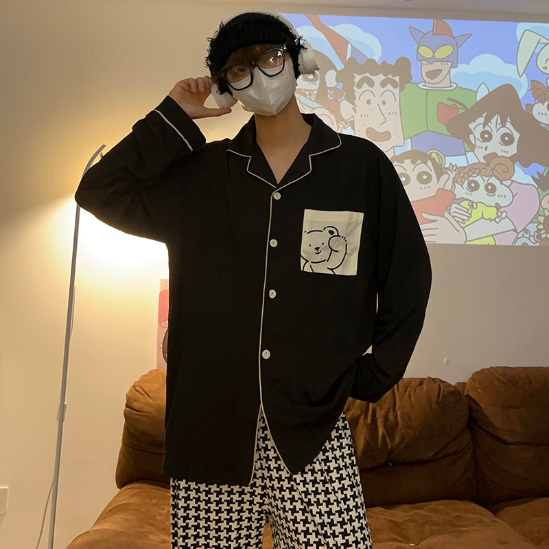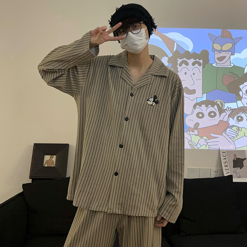Главная страница > Корейский продвинутый смысл в полоску пижамы мужская весна осень черный кот хлопок с длинными рукавами набор из двух частей мужской подростковой домашней одежды