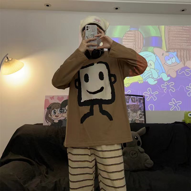 Однотонный узор-мультяшные брикеты с длинными рукавами + брюки