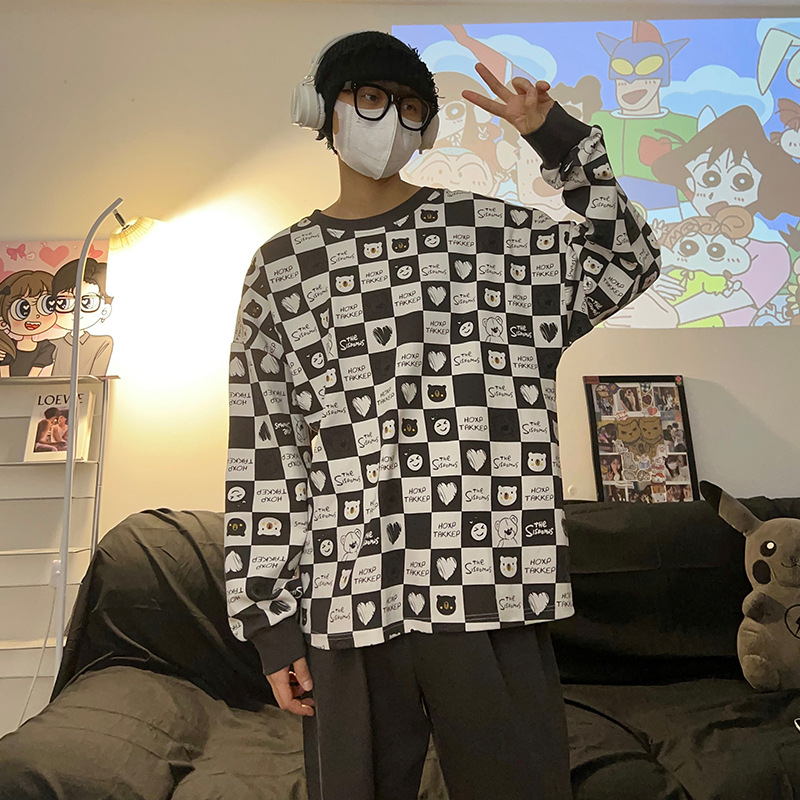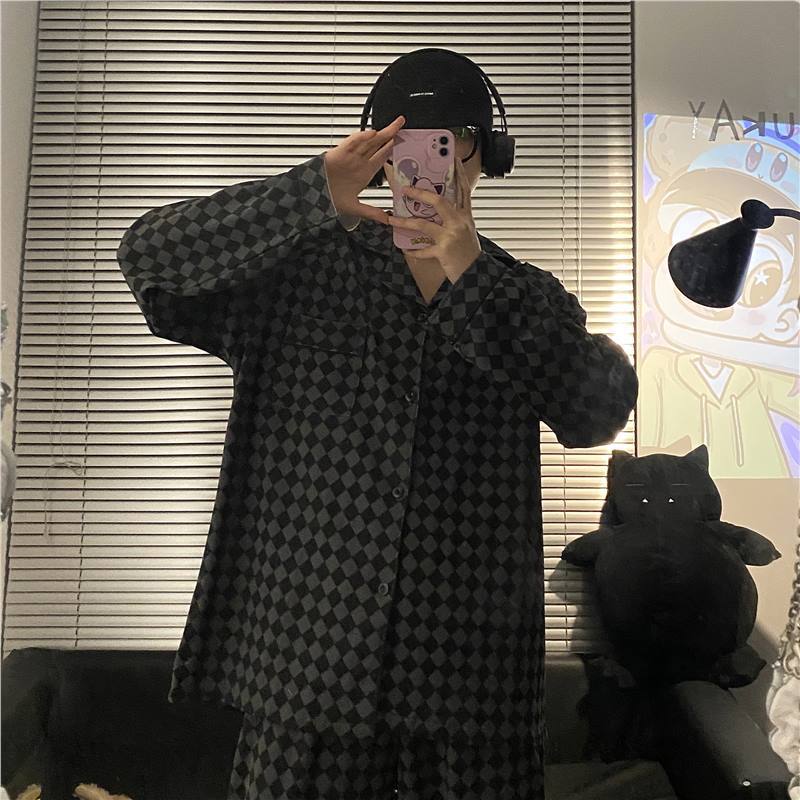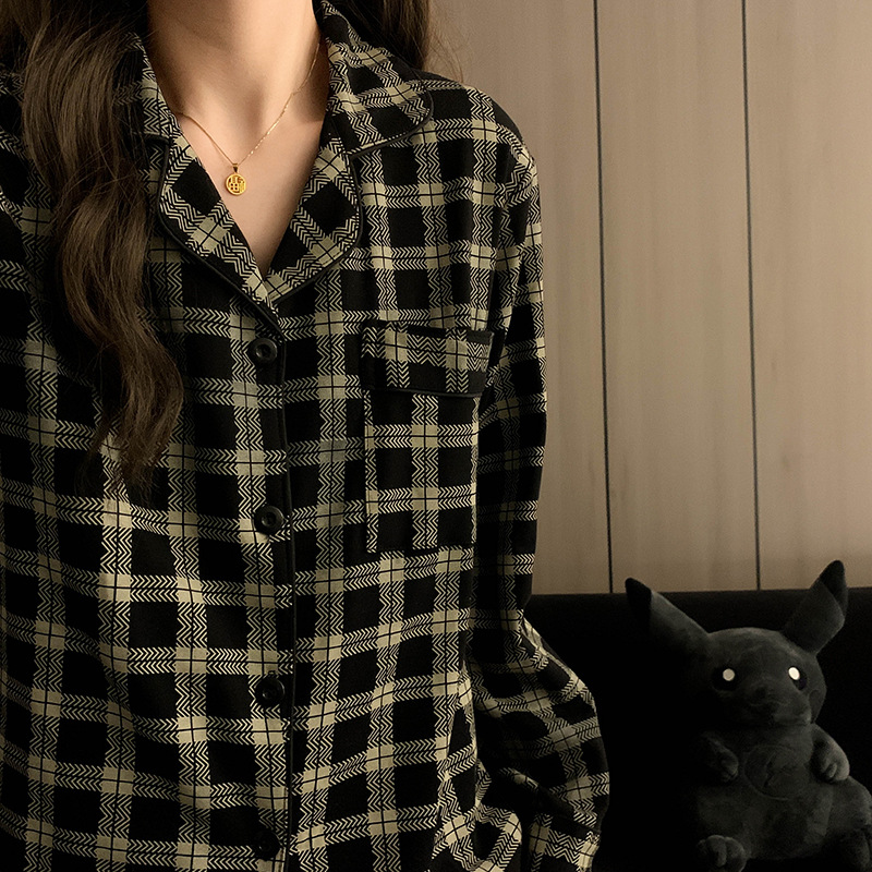 Однотонный узор - черный клетчатый длинный рукав + брюки.