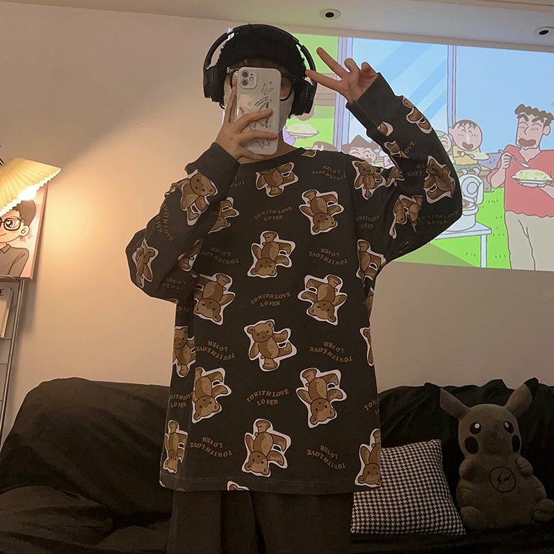 Однотонный - граффити-медведь с длинными рукавами + брюки