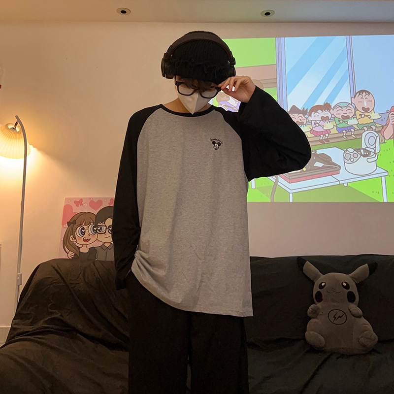 Однотонный узор - круглый вырез, черно-серый длинные рукава Микки + брюки.