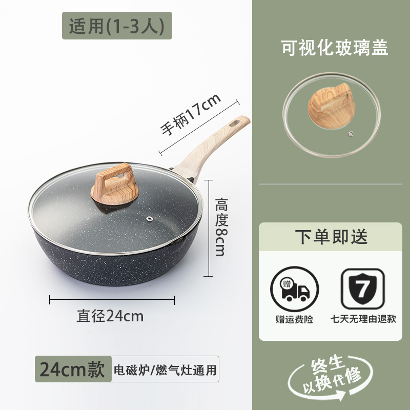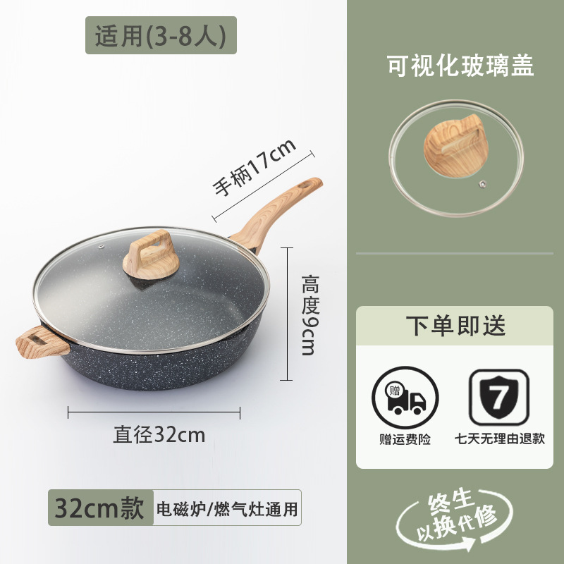 Главная страница > Сковорода с покрытием из камня майфан и композитным дном, антипригарная, бытовая, бездымная, подходит для электрических плит, с плоским дном.