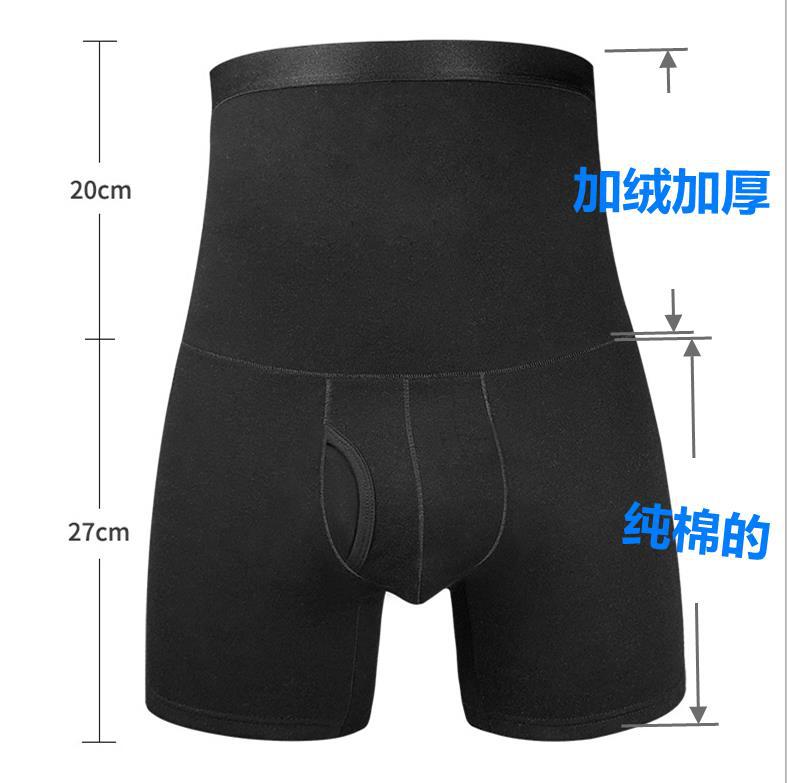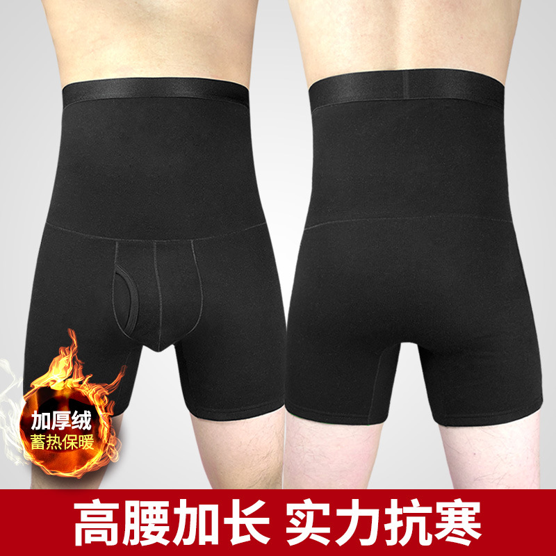 Зимнее утолщенное теплое нижнее белье с высокой талией на флисовой подкладке, мужское однотонное защитное белье для талии, для среднего и пожилого возраста, Длинные боксерские шорты больших размеров