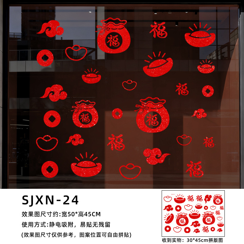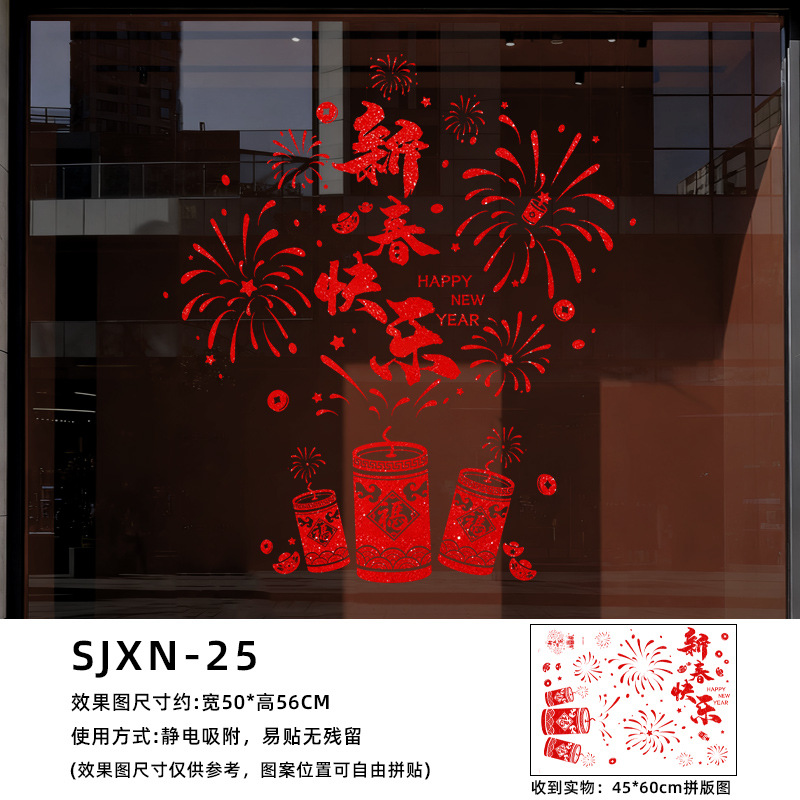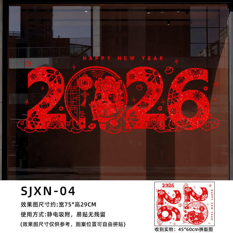 Главная страница > Новогодние наклейки-стикеры 2026 года, статические, для стеклянных дверей, декор для торговых центров на Китайский Новый год (Год Лошади), красные украшения для окон на Новый год