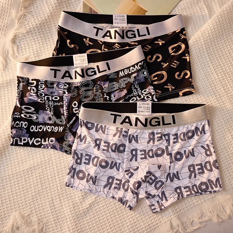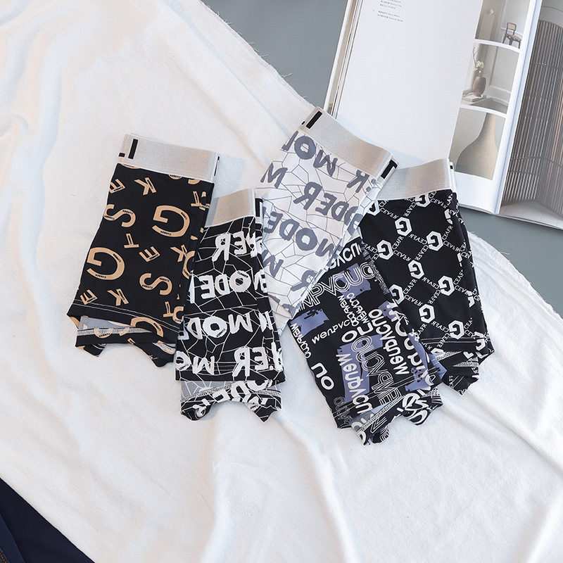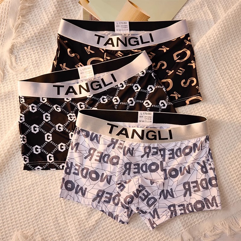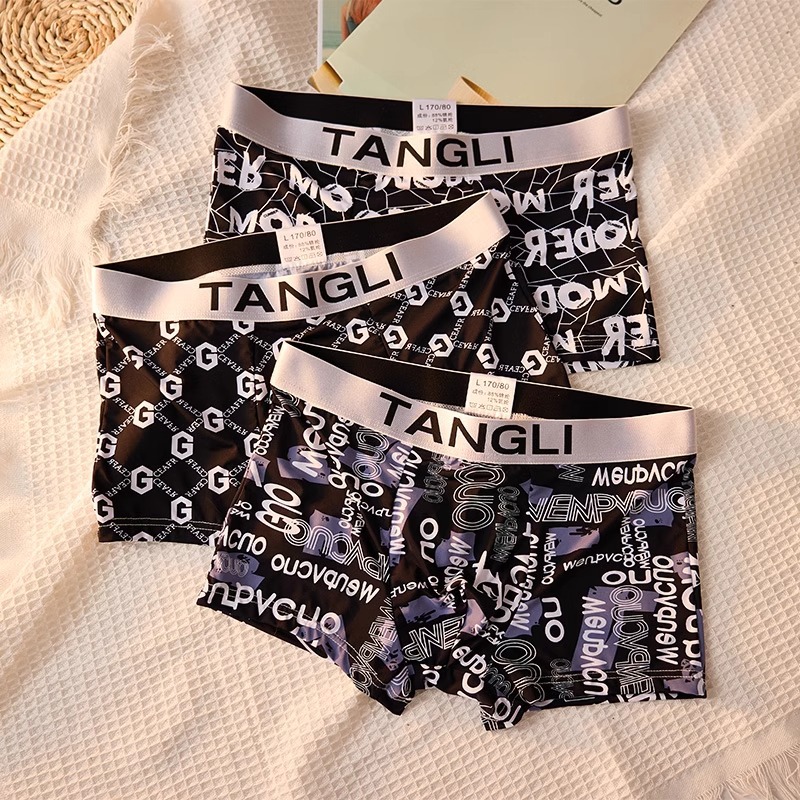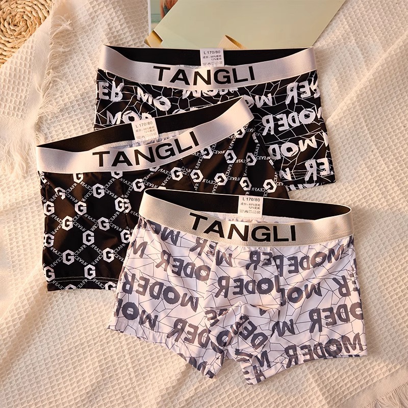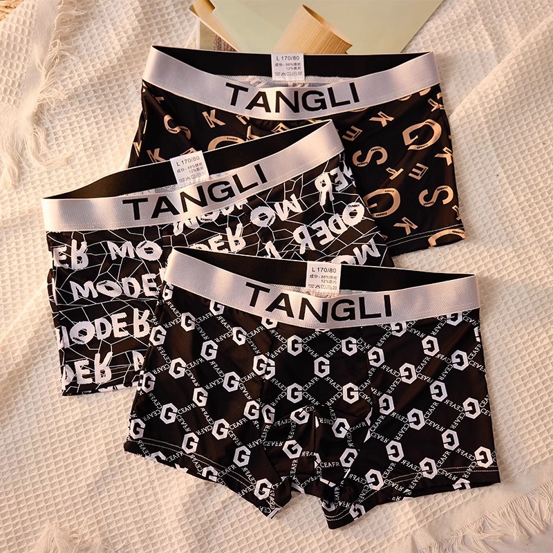 (Три пакета ссылок) оптом летнее мужское бесшовное нижнее белье из ледяного шелка, ультратонкое дышащее модное с принтом, модное удобное