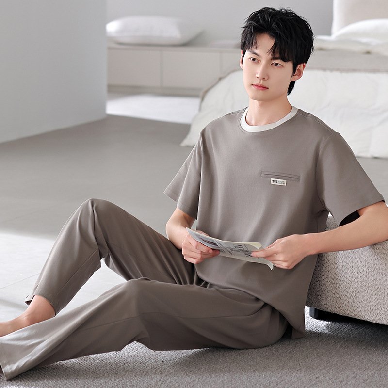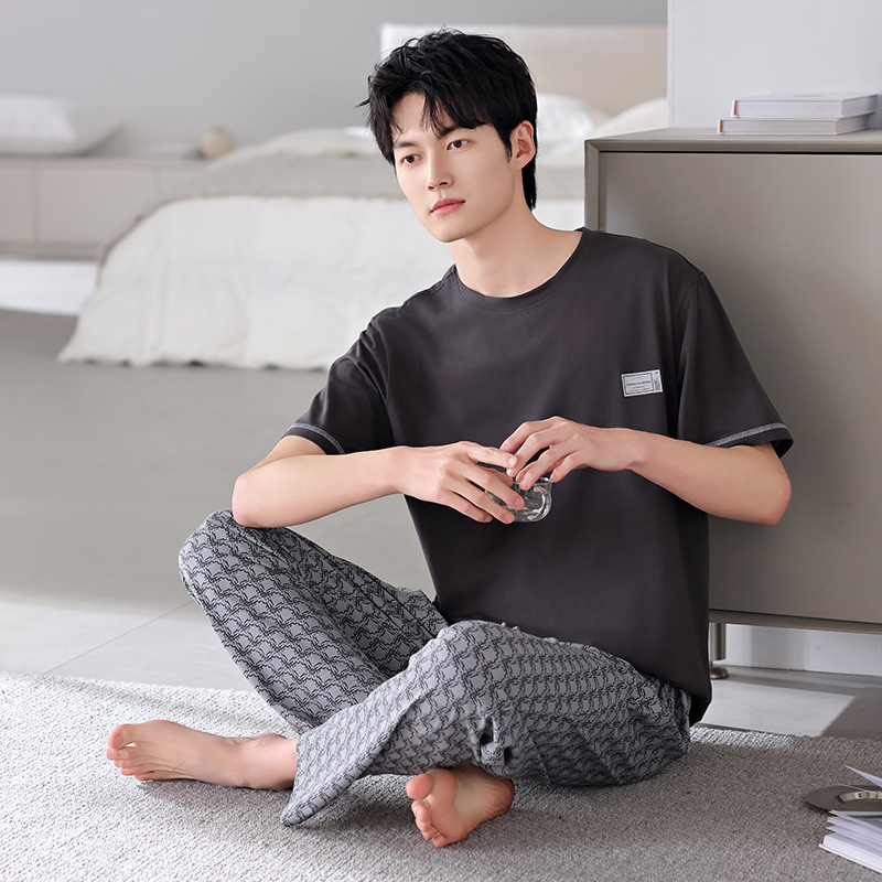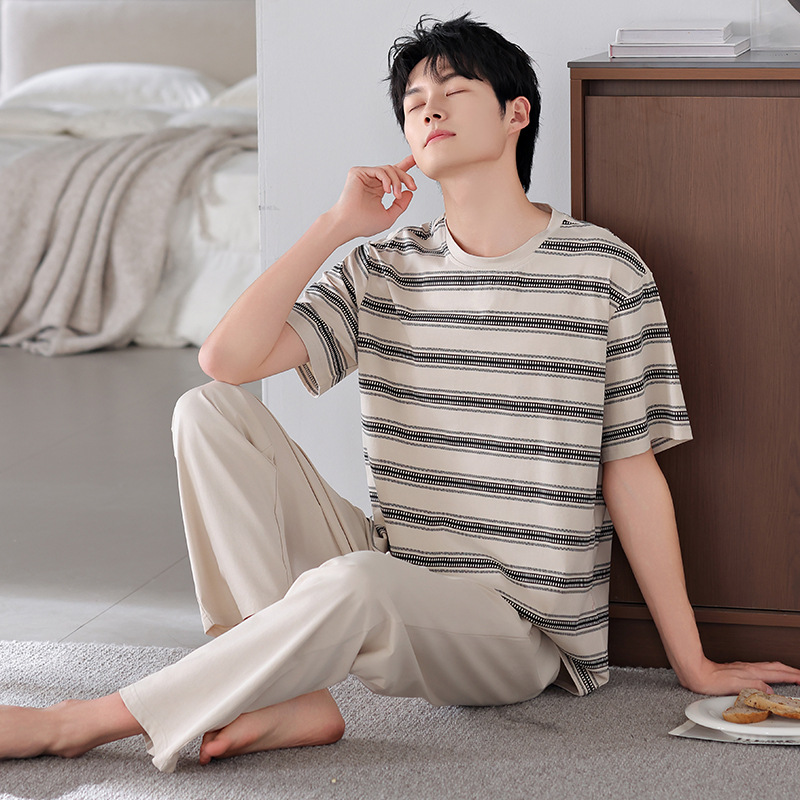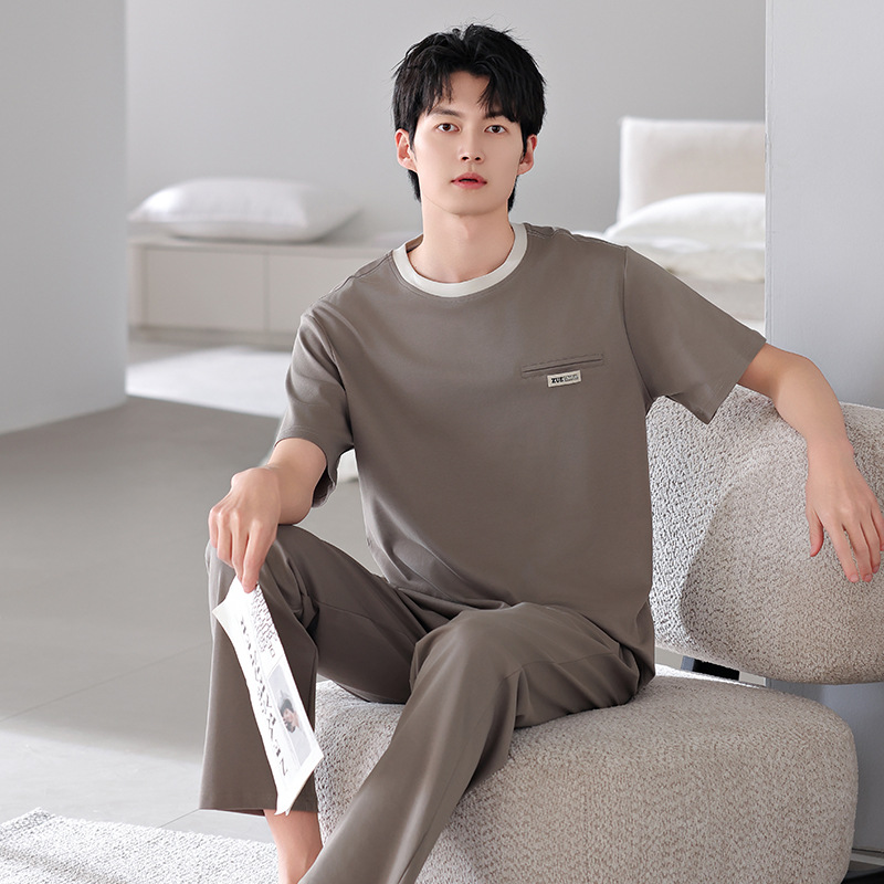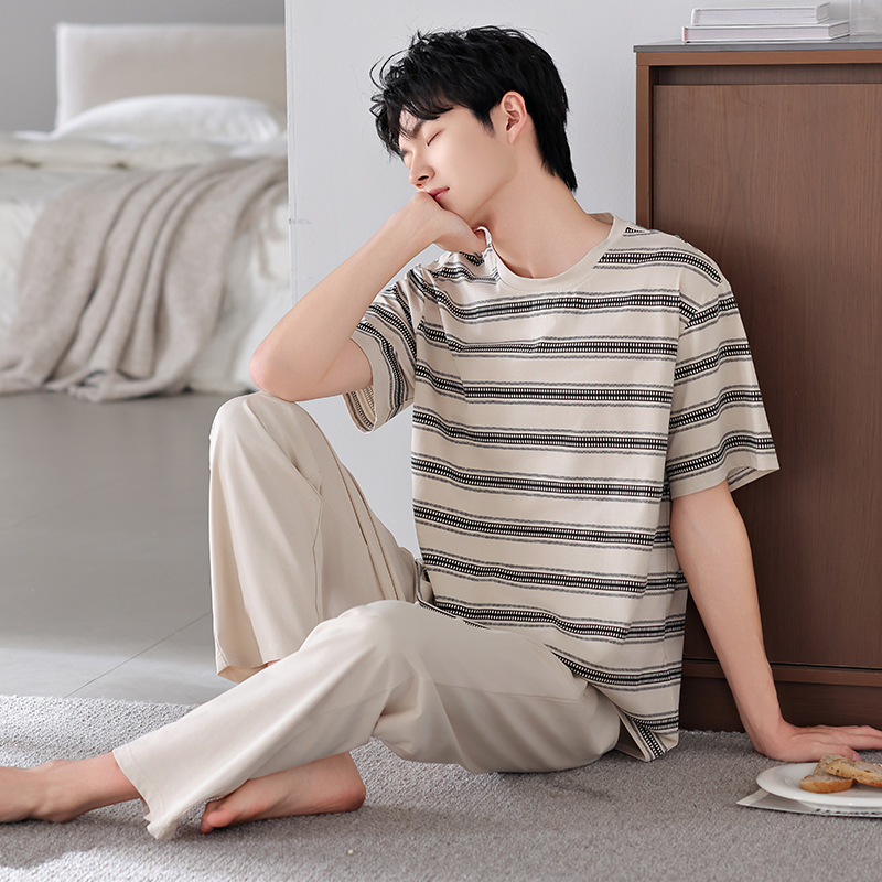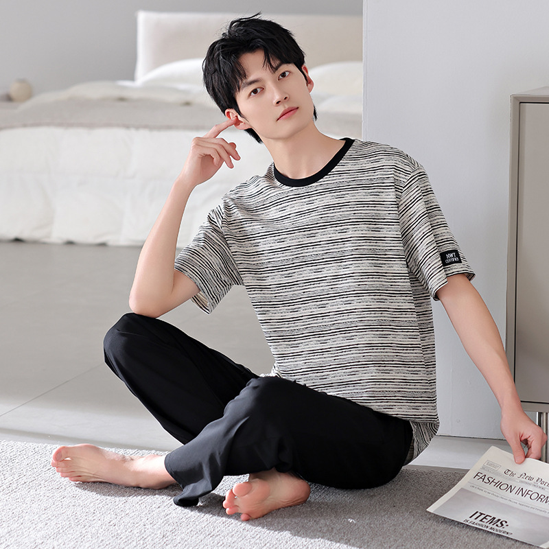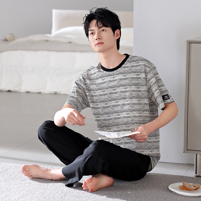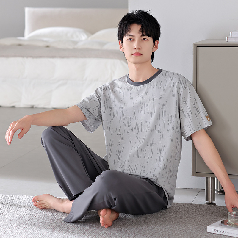 Главная страница > Мужские летние тонкие пижамы из чистого хлопка с коротким рукавом, новинка 2025 года, повседневный домашний комплект