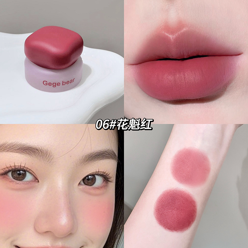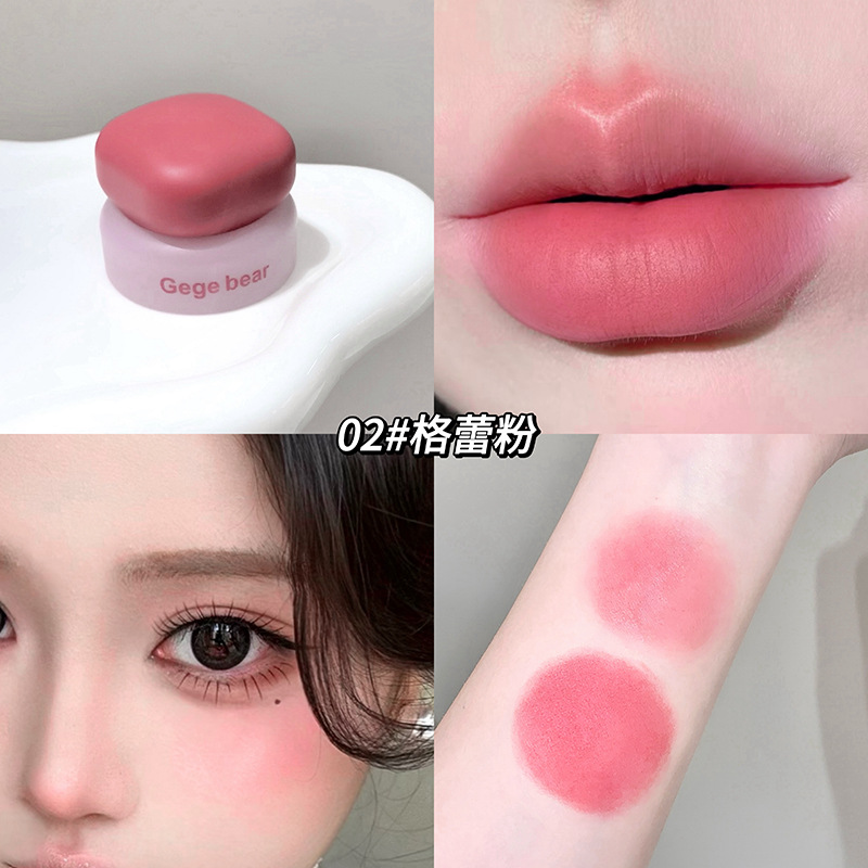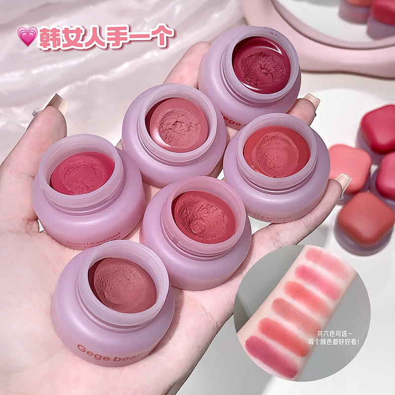 Gege Bear Mousse для губ и щек двойного назначения, матовая матовая отбеливающая несохнущая корейская кремовая румянец