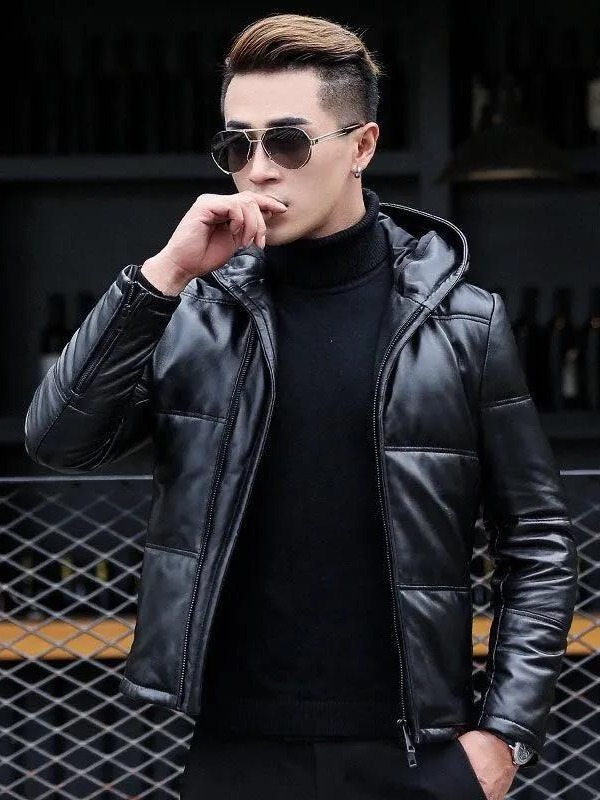 Главная страница > Новая зимняя кожаная куртка Haining для мужчин, короткая модная приталенная куртка с капюшоном, утепленная повседневная верхняя одежда для мужчин.