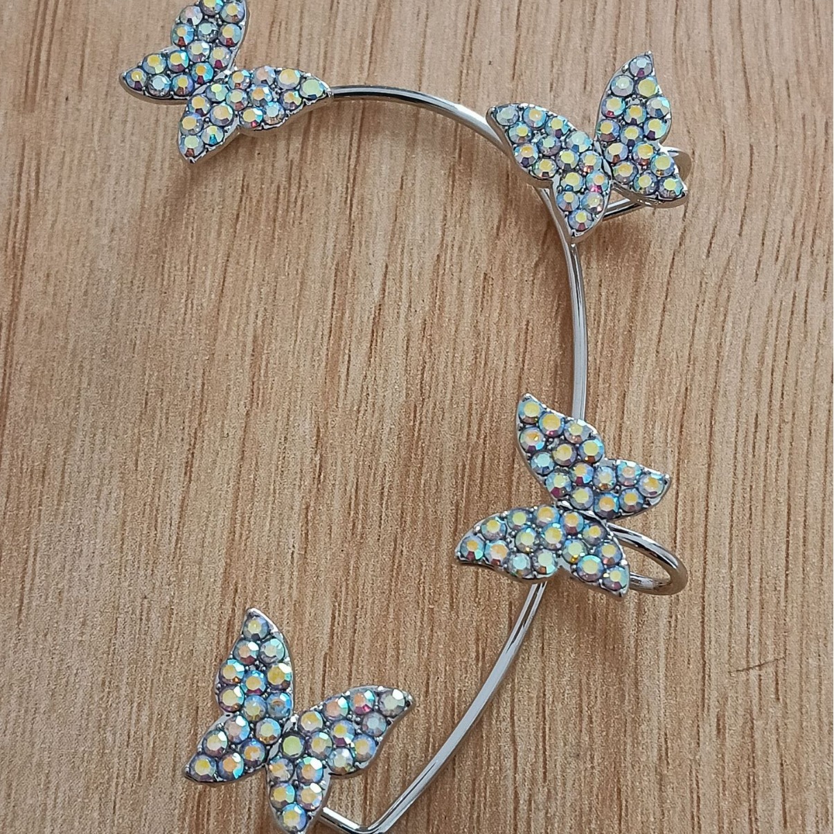 Серьги-бабочки с цирконием, серебро, правое ухо