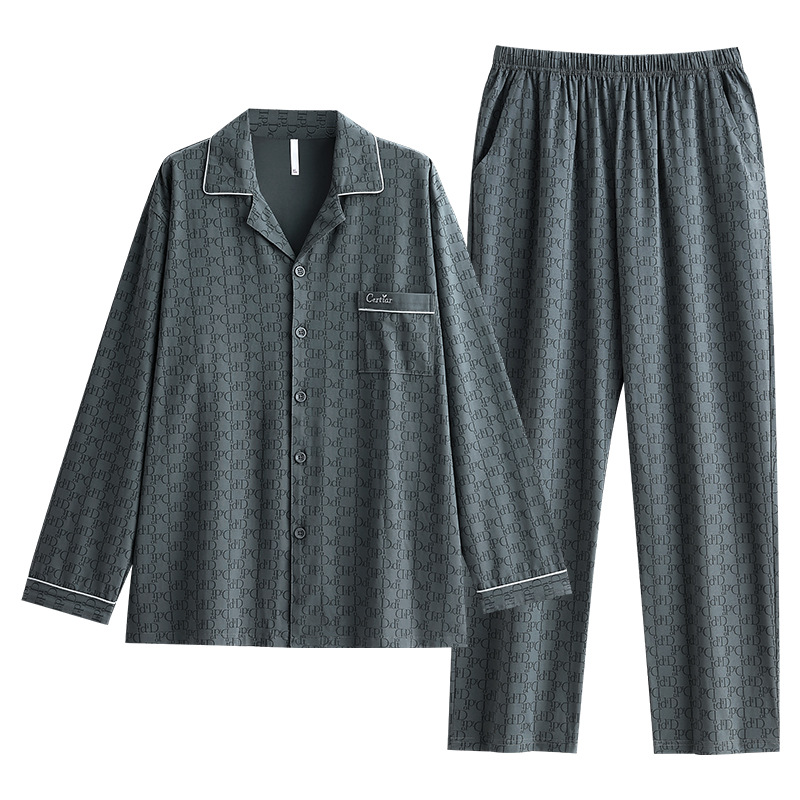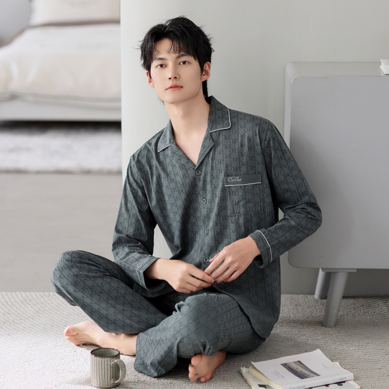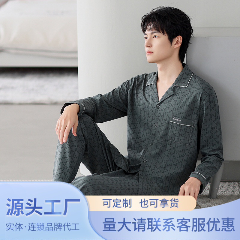 Весенние и осенние мужские пижамы из хлопка кардиган высокого уровня с длинными рукавами брюки набор из тысячи птиц