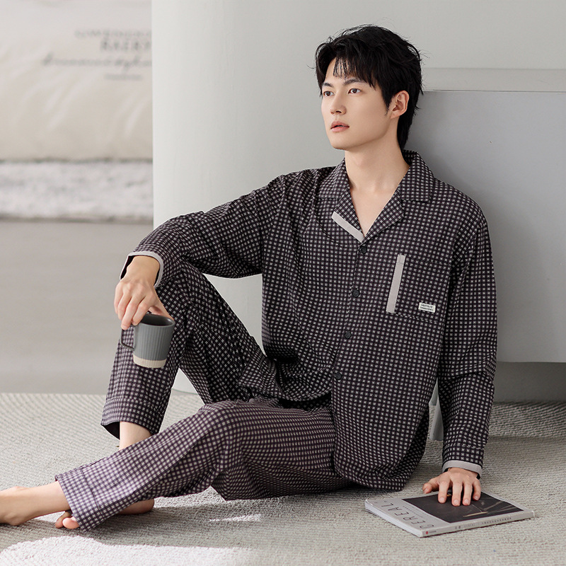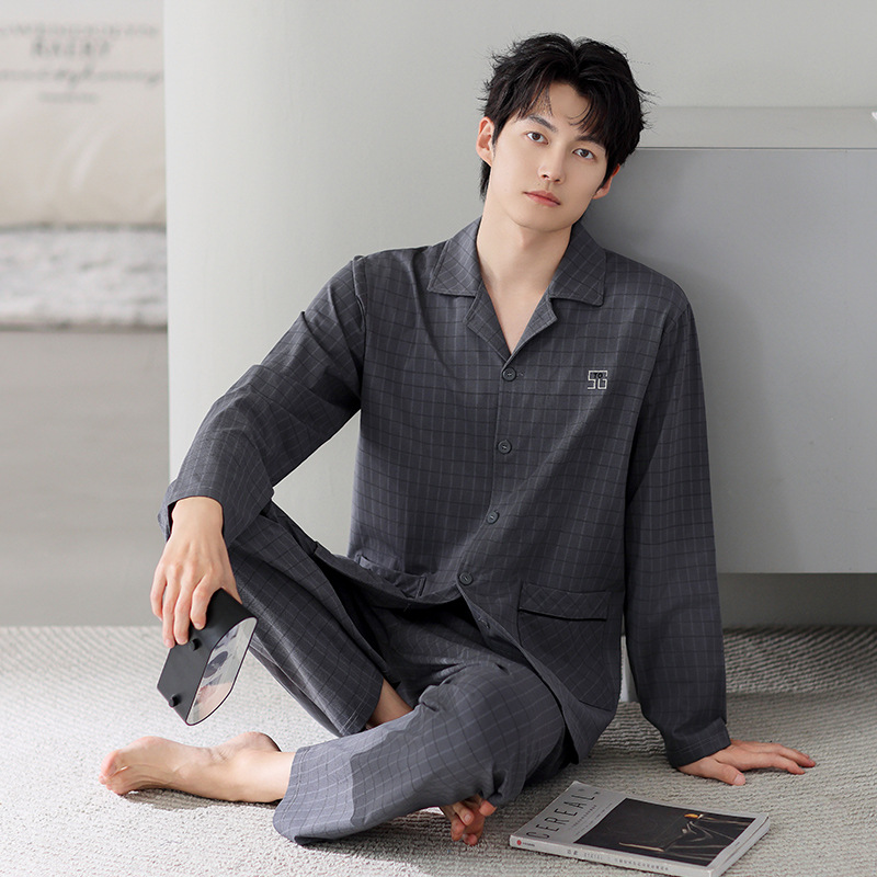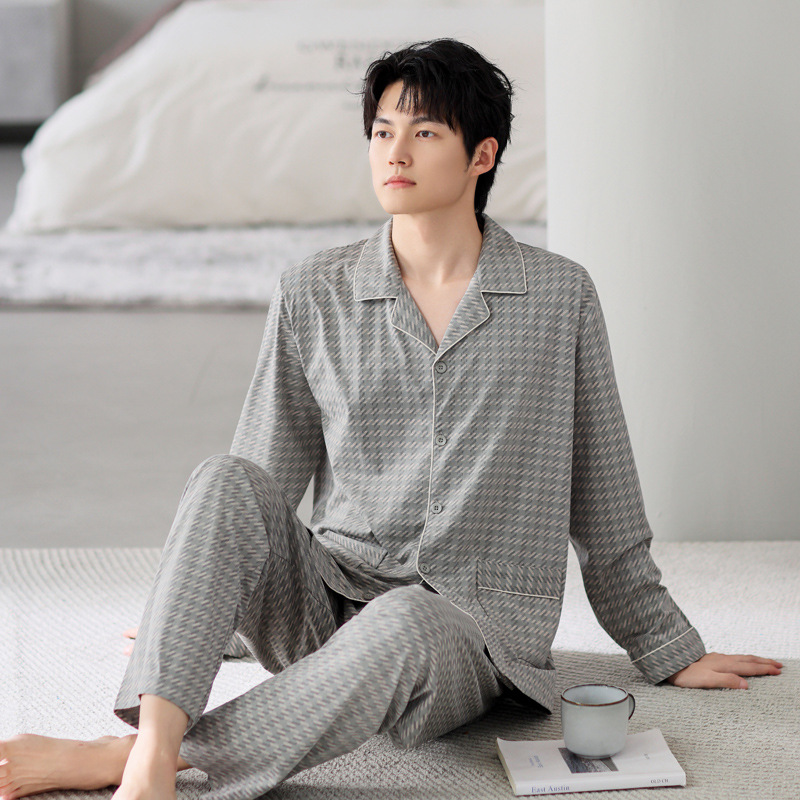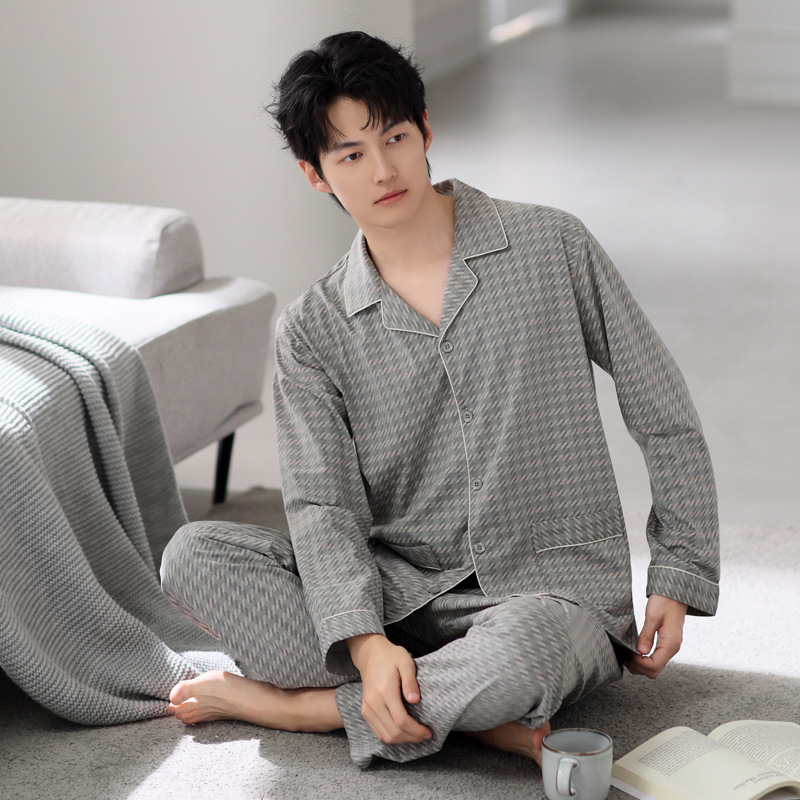 Главная страница > Весенние и осенние мужские пижамы из хлопка кардиган высокого уровня с длинными рукавами брюки набор из тысячи птиц
