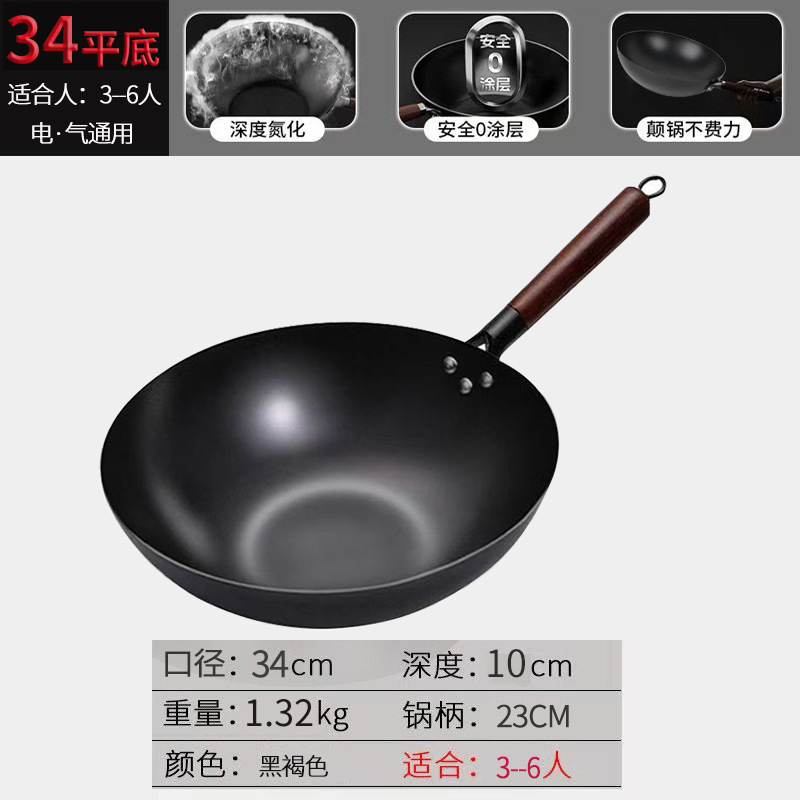 Чугунная сковорода-вок Zhangqiu, большая, для домашнего использования, традиционная, без покрытия, антипригарная, нитрированная, не требующая предварительной обработки.