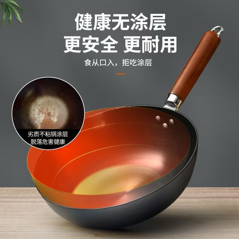 Главная страница > Чугунная сковорода-вок Zhangqiu, большая, для домашнего использования, традиционная, без покрытия, антипригарная, нитрированная, не требующая предварительной обработки.