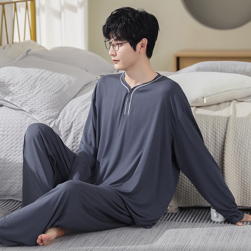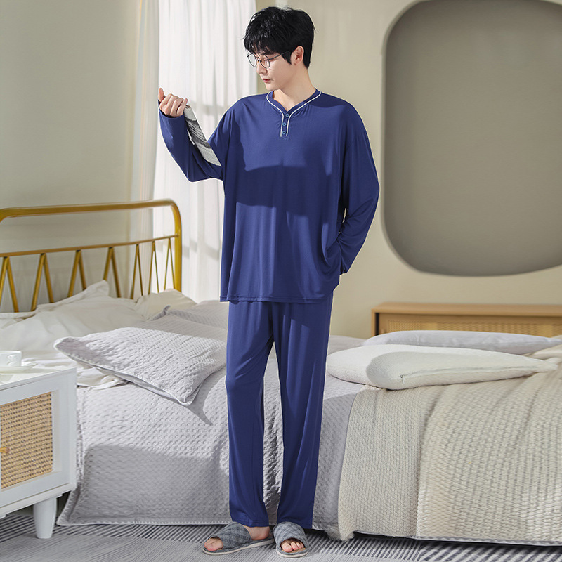 Главная страница > Весенне-осенняя домашняя одежда больших размеров, костюм, мужская Тонкая пижама из модала с длинными рукавами, осенняя мужская домашняя одежда из двух частей