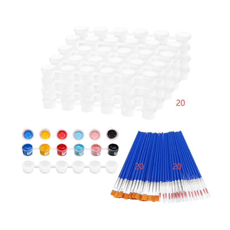 Популярный трансграничный набор [20 коробок с красками + 20 кистей с плоской головкой и 20 кистей с заостренной головкой]
