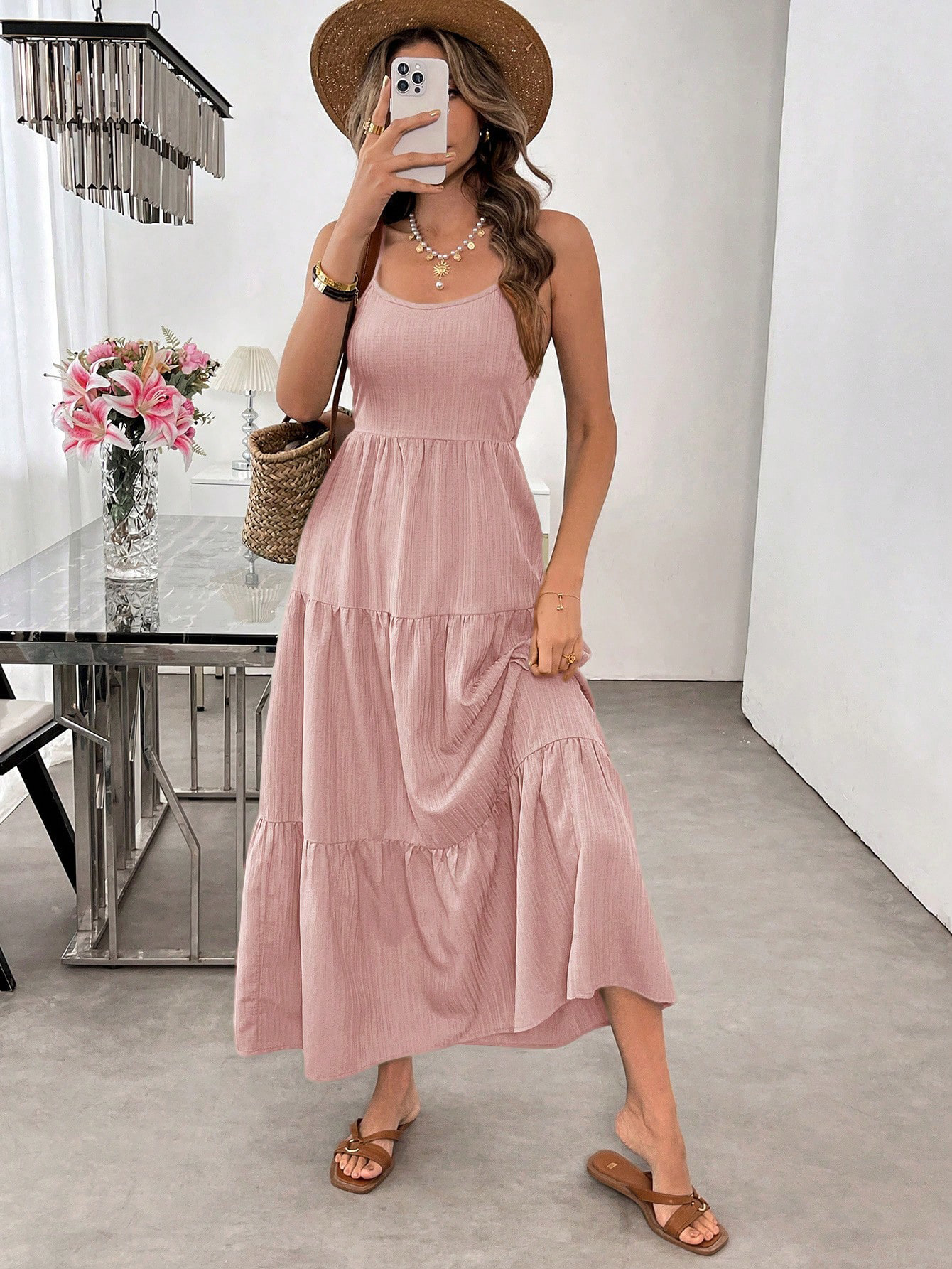 Главная страница > Европейская и американская женская одежда для внешней торговли 2025: платье с открытой спиной, подвязками, длинной юбкой-тортом, большим бантом на талии и широким подолом.