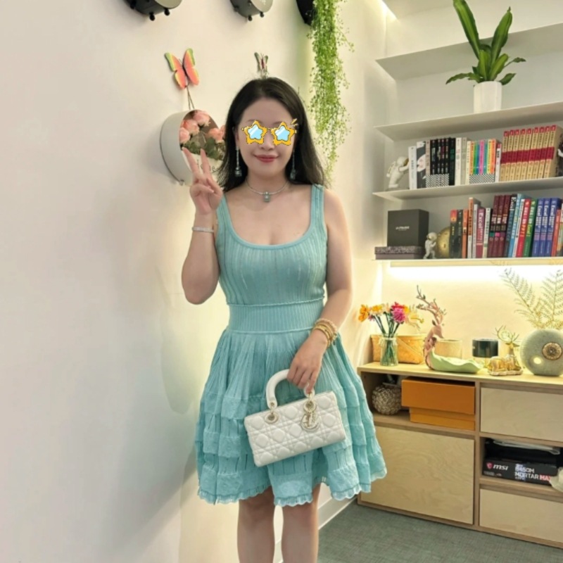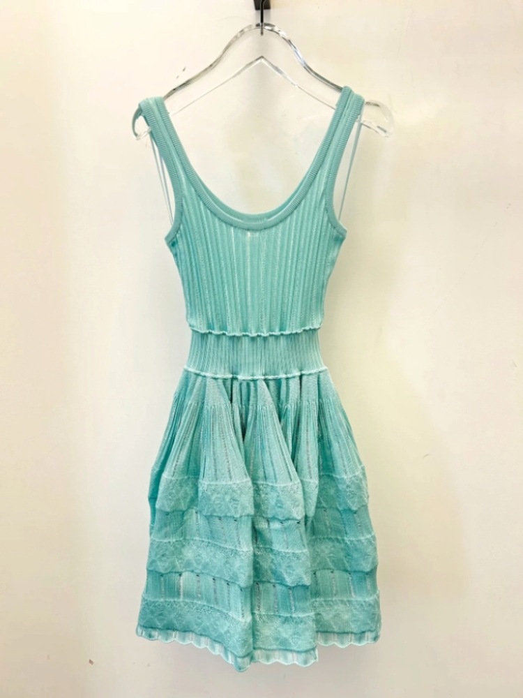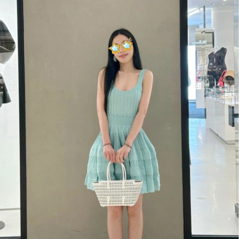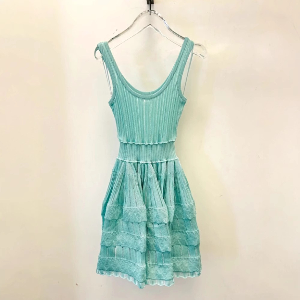 Главная страница > Звезда того же Гао Дин 2024 Ся Синь Мятная зеленая юбка без рукавов с полой талией трикотажное холодное платье